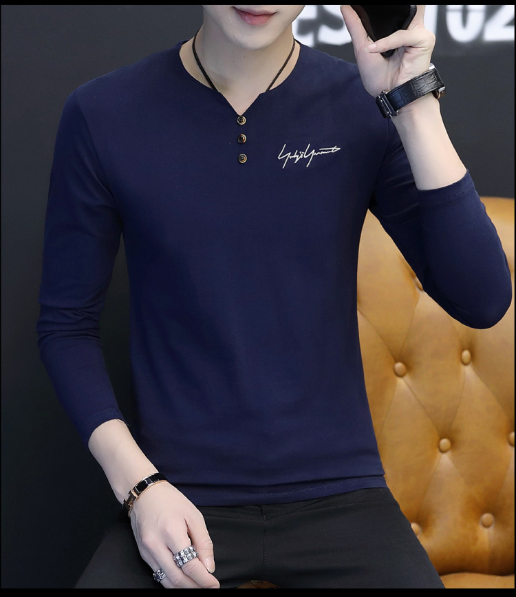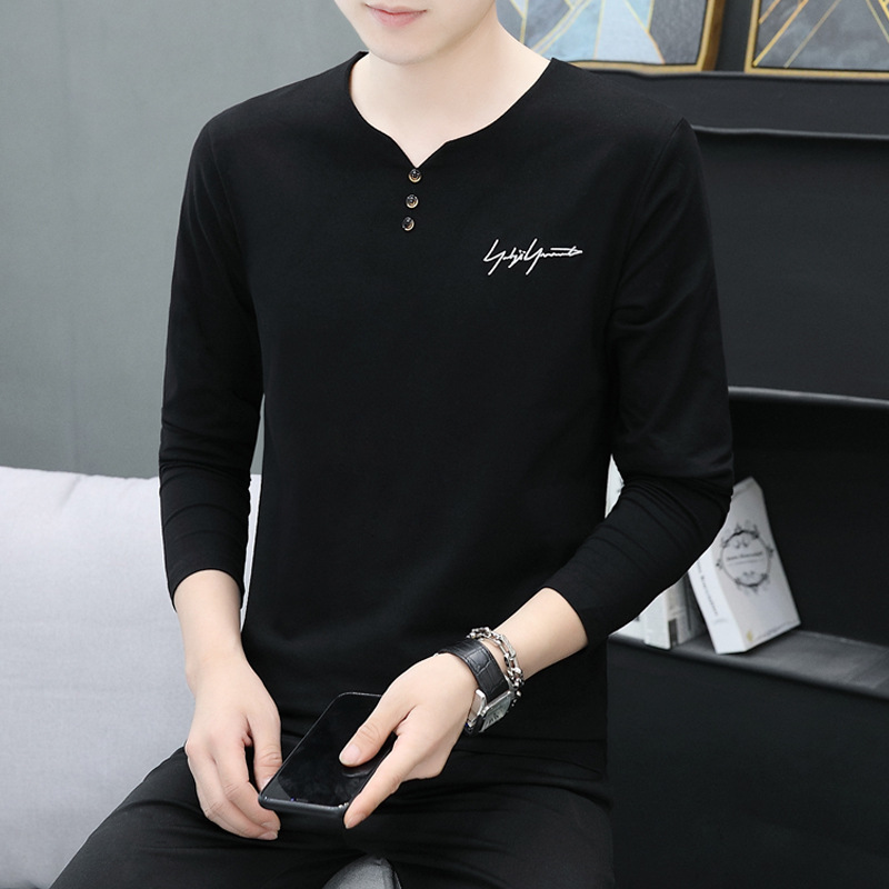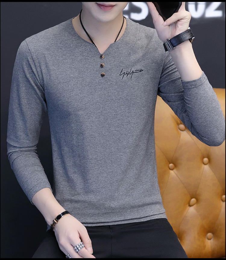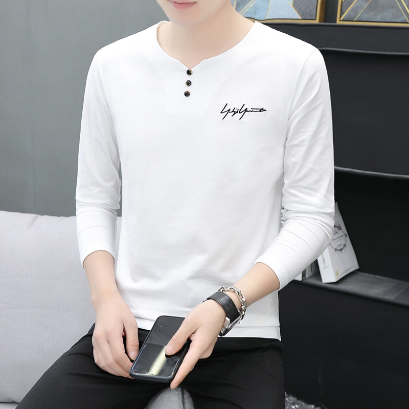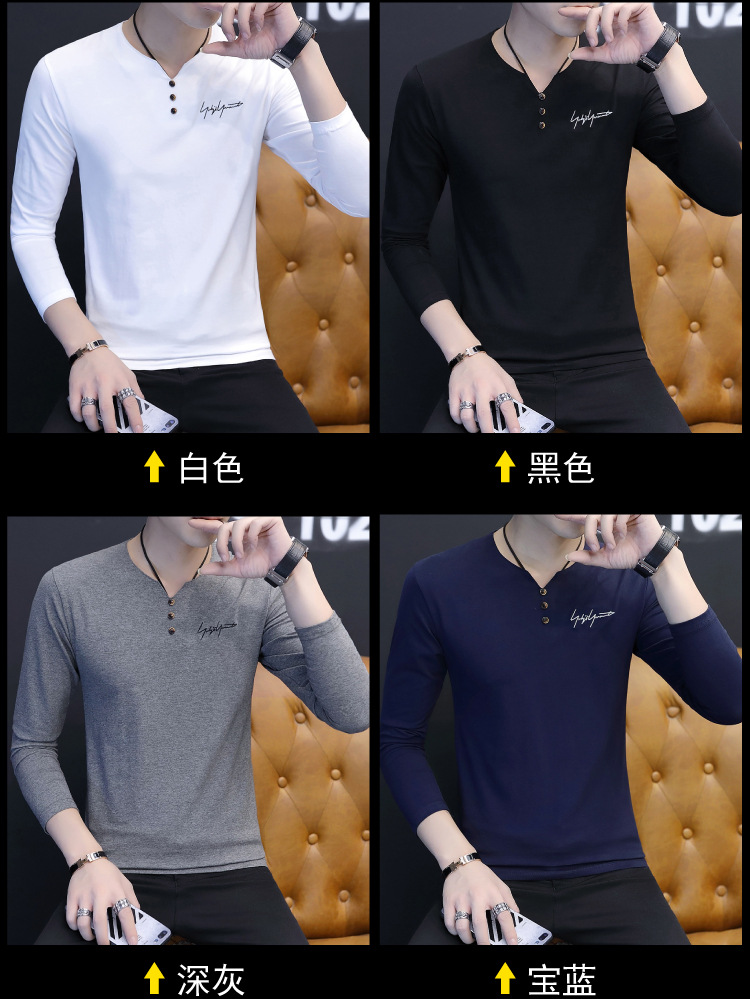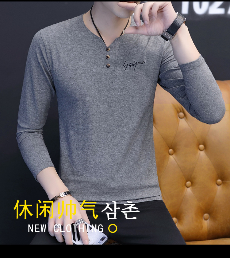 봄과 가을 남성용 긴 소매 티셔츠 내베이스 셔츠 탑 옷 패션 보이즈 셔츠 V-Neck 티셔츠 공장 아울렛