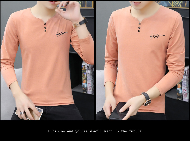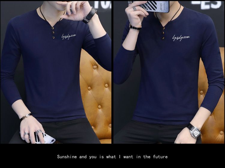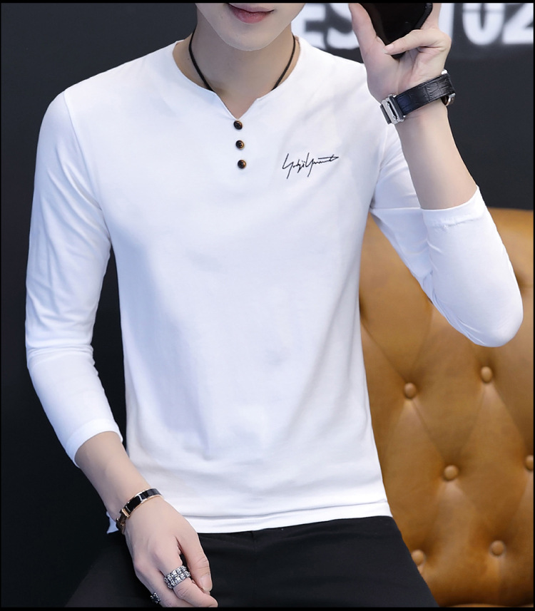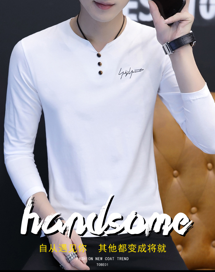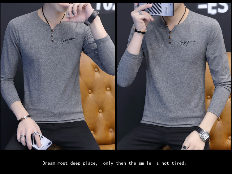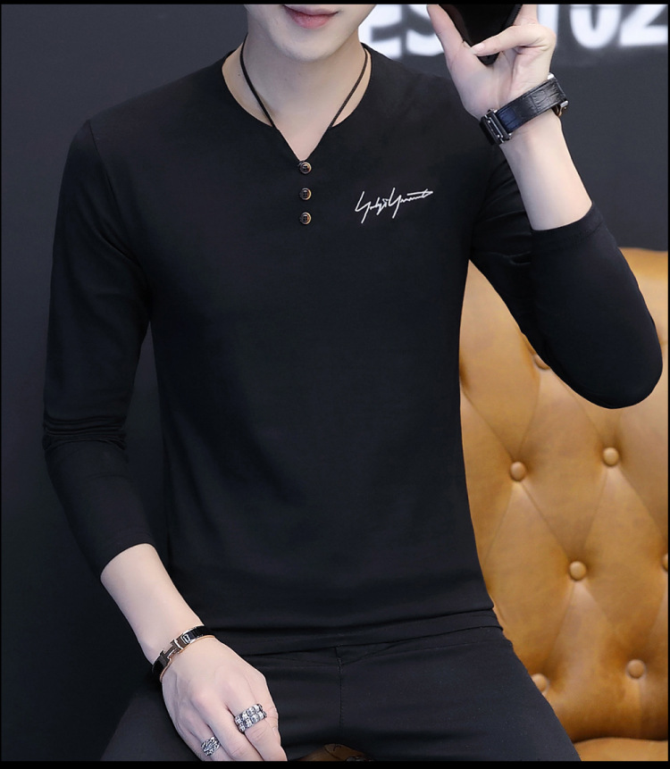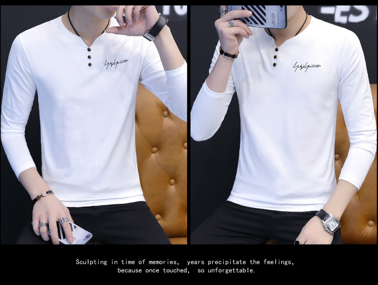봄과 가을 남성용 긴 소매 티셔츠 내베이스 셔츠 탑 옷 패션 보이즈 셔츠 V-Neck 티셔츠 공장 아울렛