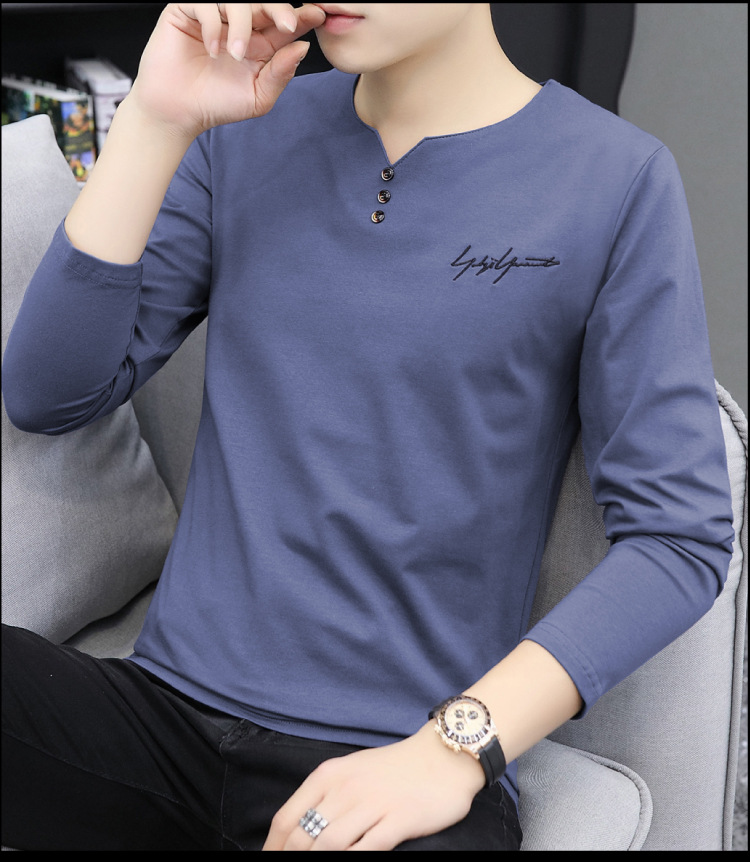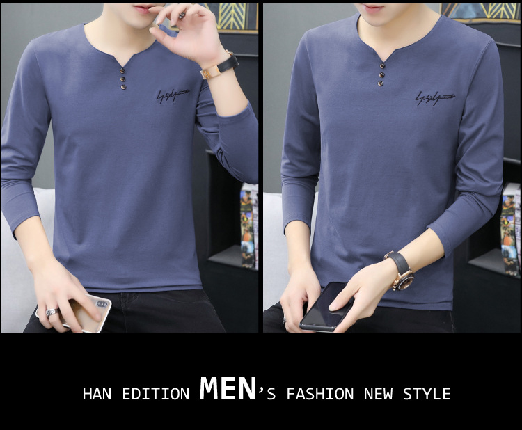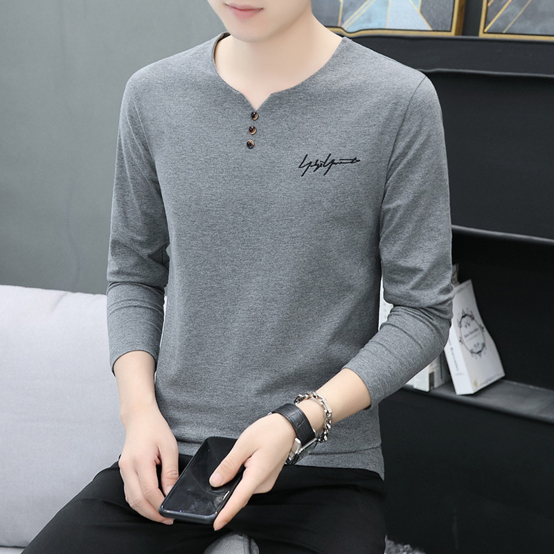 봄과 가을 남성용 긴 소매 티셔츠 내베이스 셔츠 탑 옷 패션 보이즈 셔츠 V-Neck 티셔츠 공장 아울렛스토어 가기