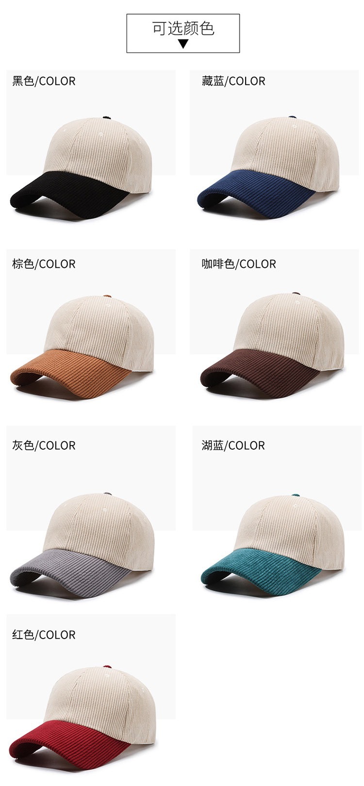 남자와 여자를위한 국경 봄 야구 모자 대외 무역 색상 매칭 디자인 코듀로이 모자 야외 레저 모자 도매