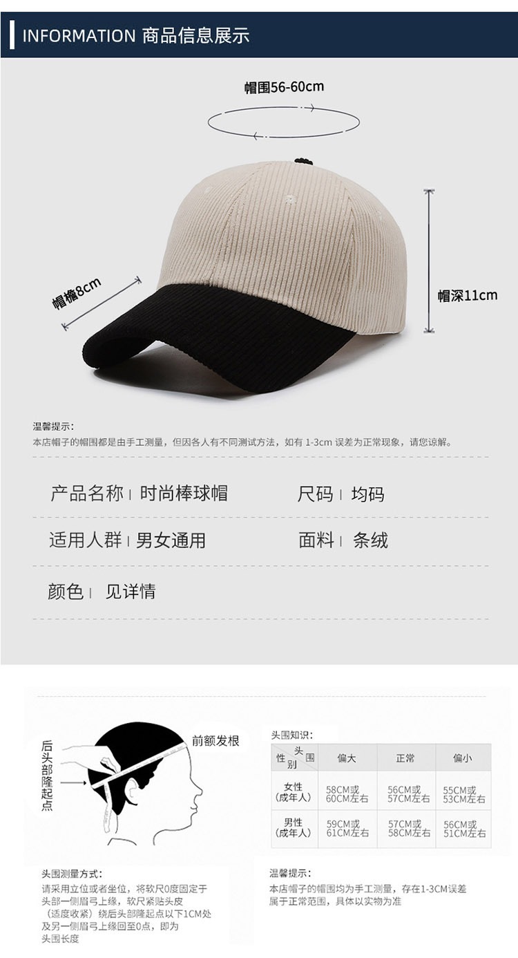 남자와 여자를위한 국경 봄 야구 모자 대외 무역 색상 매칭 디자인 코듀로이 모자 야외 레저 모자 도매스토어 가기