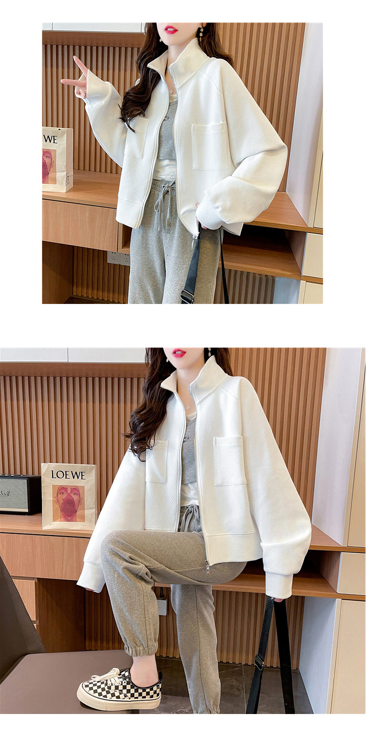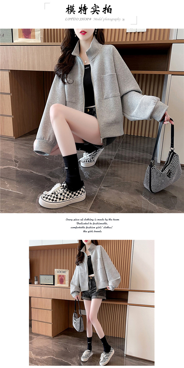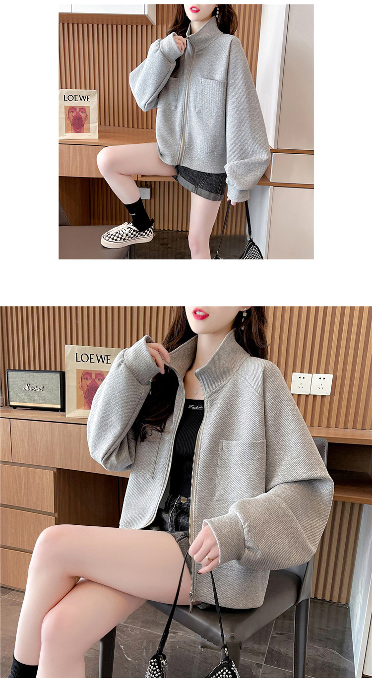 플러스 사이즈 여성용 느슨한 지퍼 카디건 단색 칼라 재킷 얇은 유행 스웨터스토어 가기