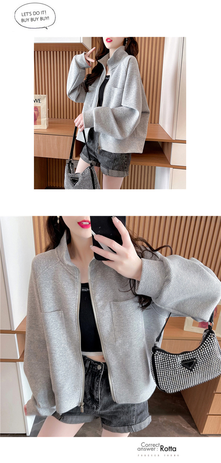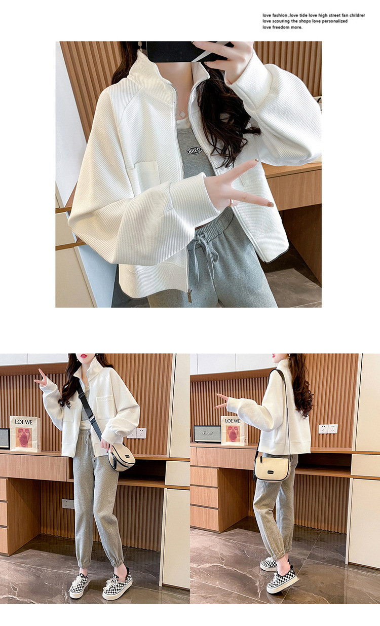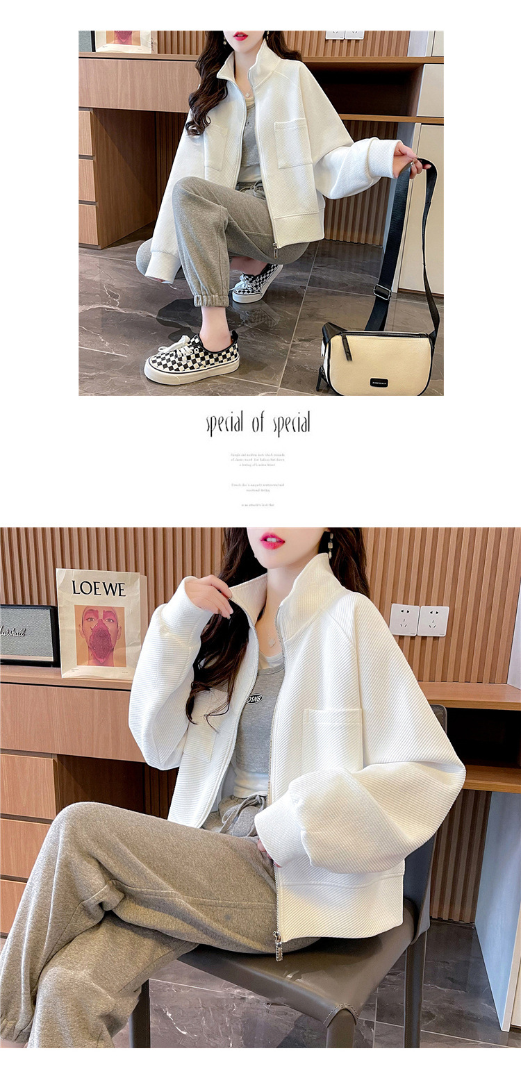 플러스 사이즈 여성용 느슨한 지퍼 카디건 단색 칼라 재킷 얇은 유행 스웨터스토어 가기