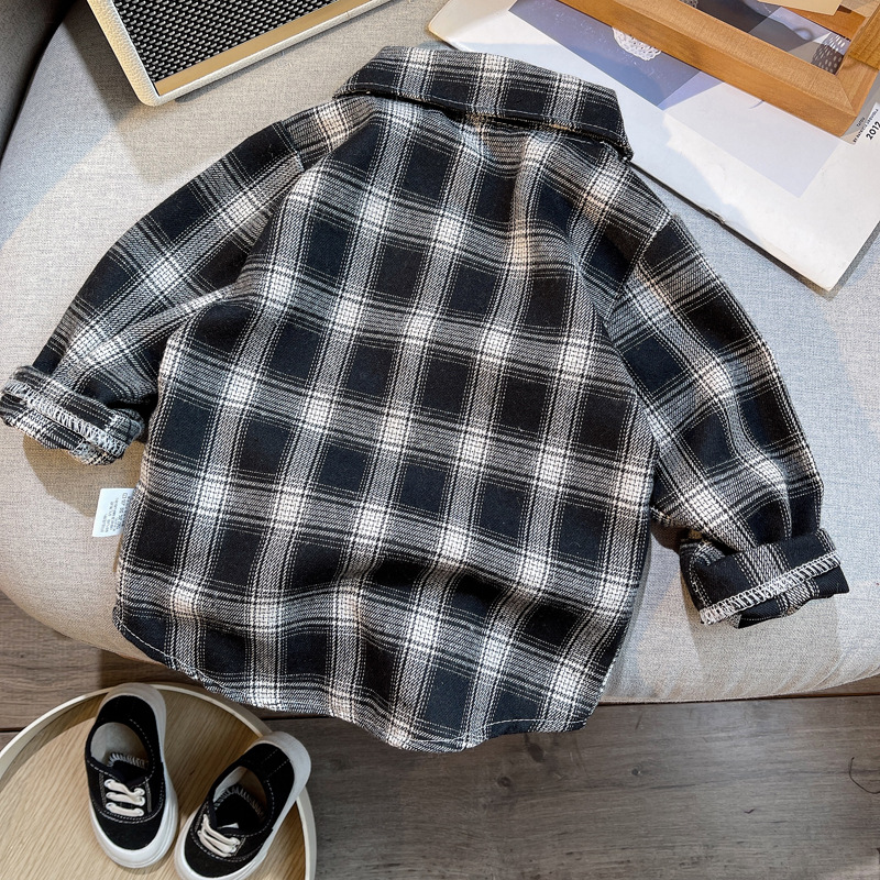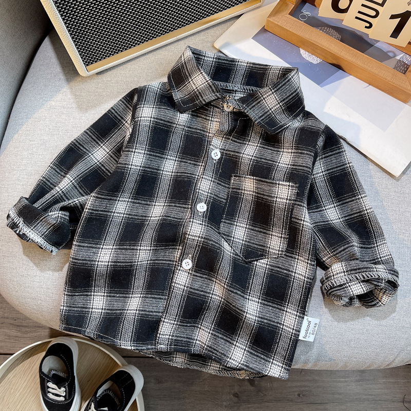 소년의 긴 소매 셔츠 격자 무늬 아기의 봄 탑 어린이 카디건 어린이 서양식 어린이 봄과 가을 옷깃 셔츠스토어 가기