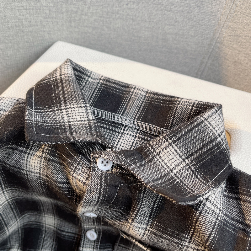 소년의 긴 소매 셔츠 격자 무늬 아기의 봄 탑 어린이 카디건 어린이 서양식 어린이 봄과 가을 옷깃 셔츠