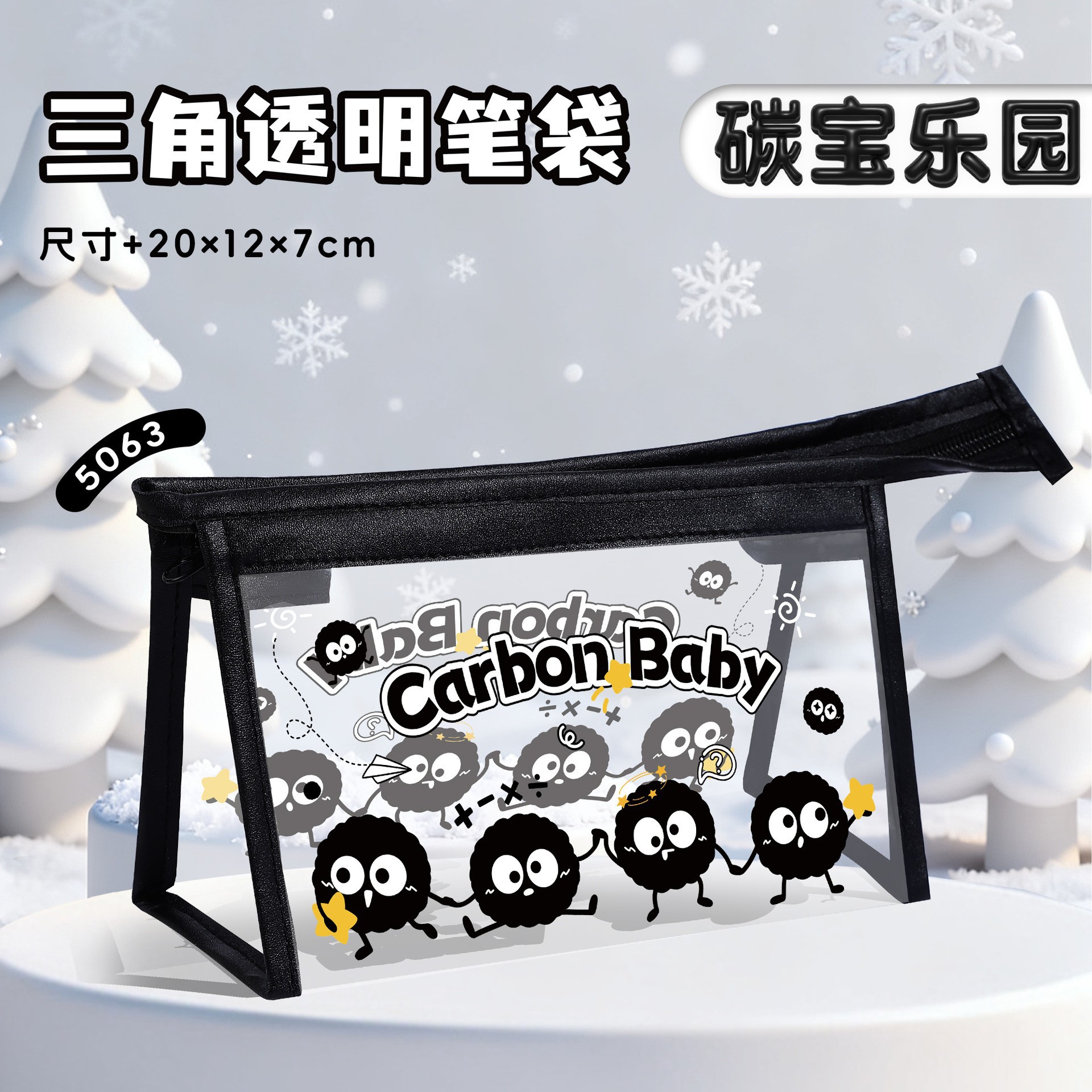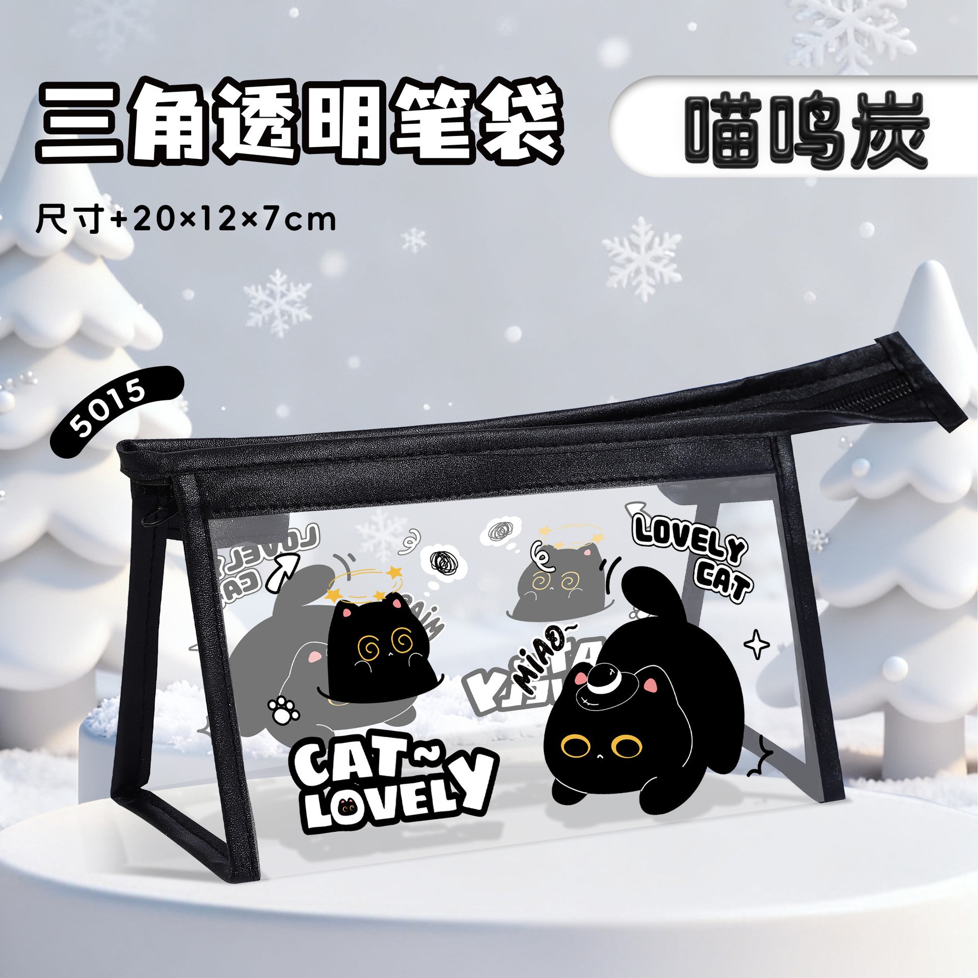 만화풍 귀여운 투명 삼각형 필통 대용량 초등학생 문구용품 PVC 방수 필통 인스타 감성 고급스러운 디자인