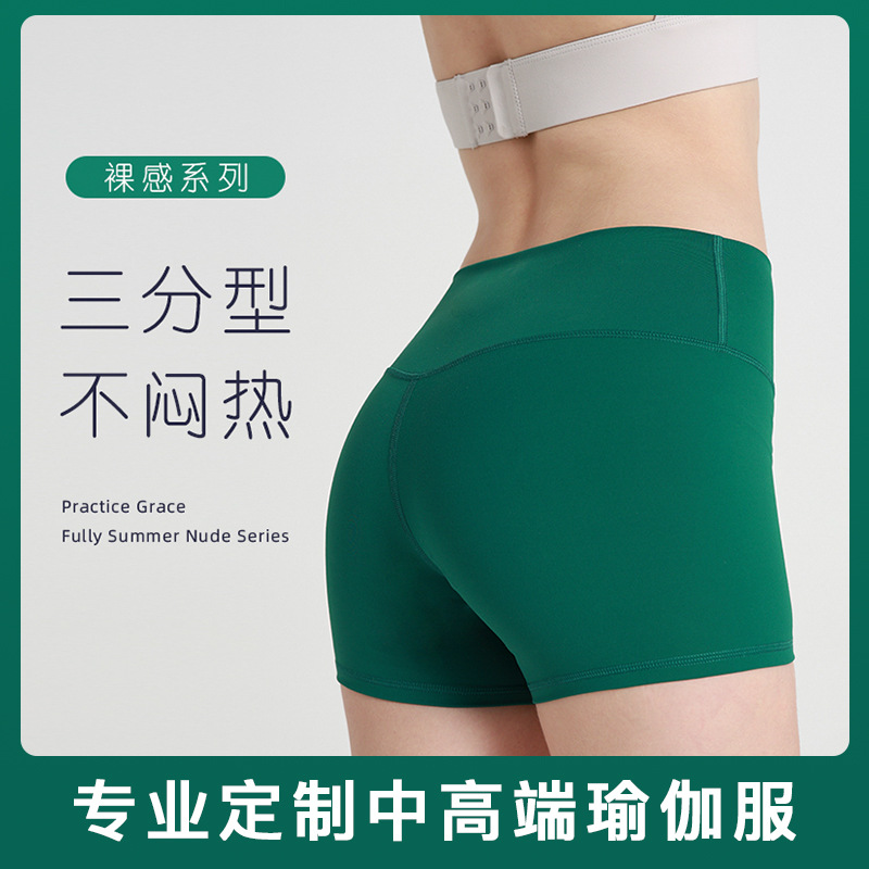 여성용 누드 여름 어색한 라인 없는 요가반바지, 하이웨이스트 힙업 피트니스 안전팬츠, 피치힙 타이트 3점팬츠
