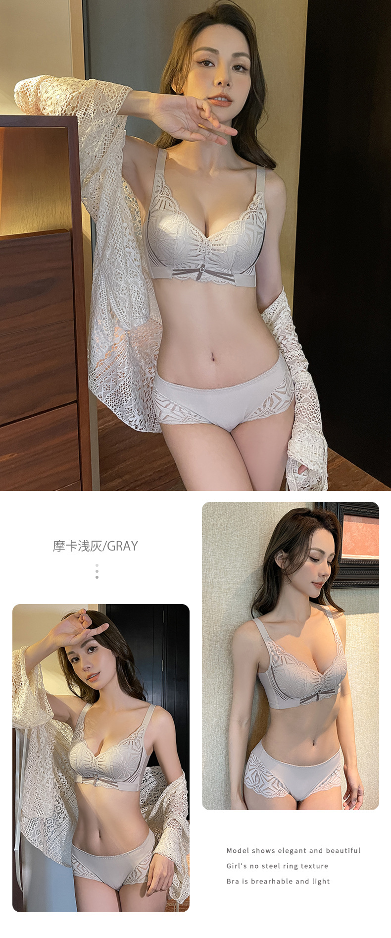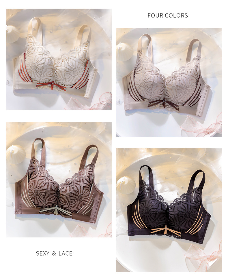 실크 속옷 여성의 비 림 작은 가슴 푸시 업 안티 처지 조정 가능한 레이스 라텍스 브래지어 세트스토어 가기