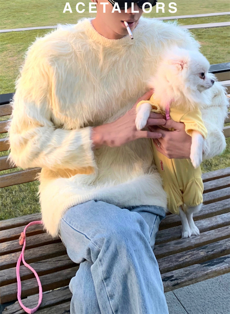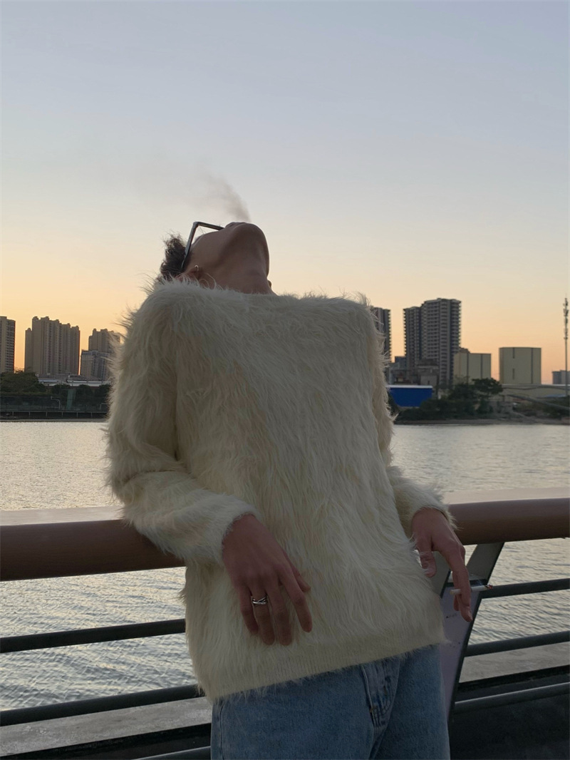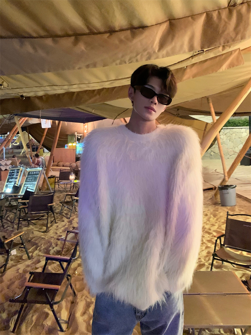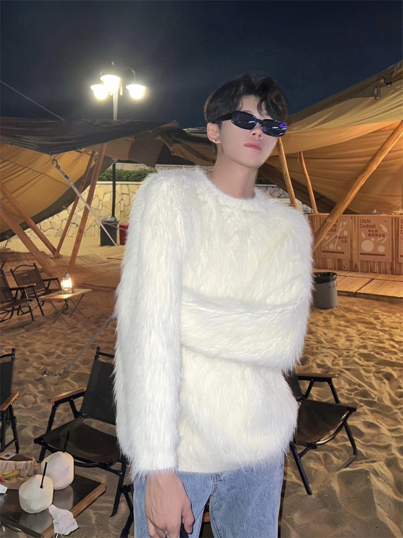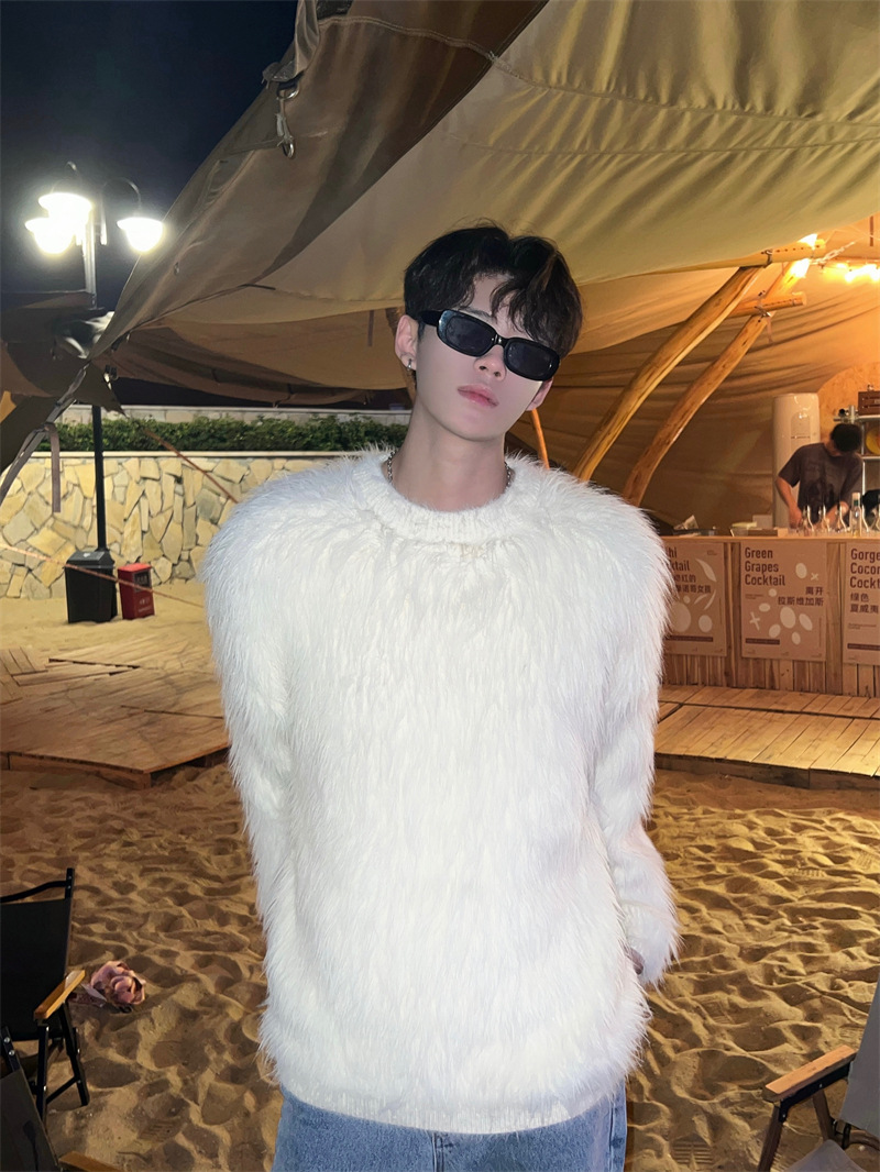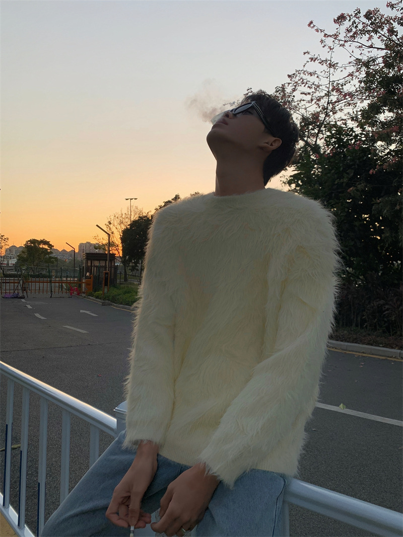 고급스러운 분위기의 남성용 밍크 스웨터, 트렌디한 브랜드, 가을 겨울 따뜻한 니트웨어, 루즈핏 라운드넥스토어 가기