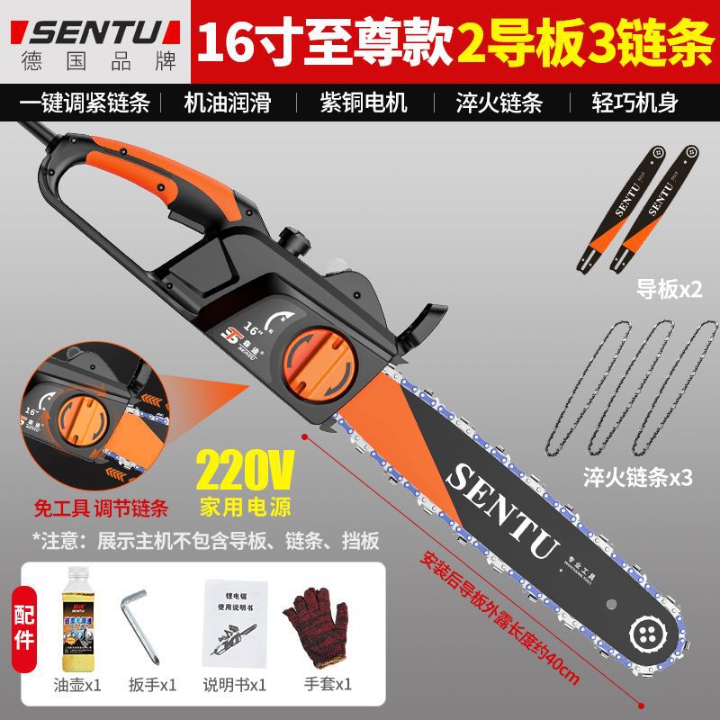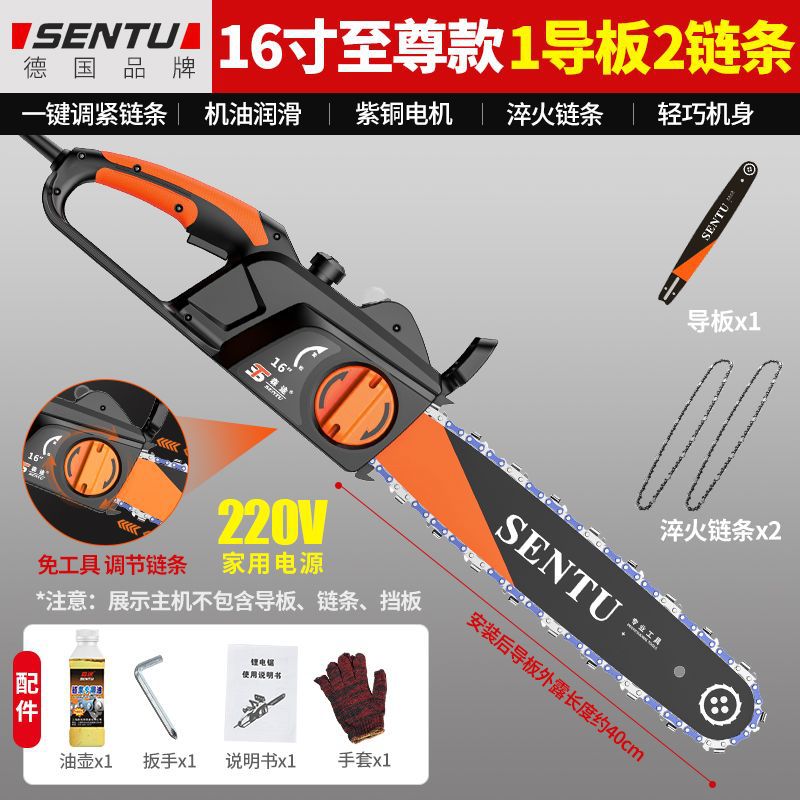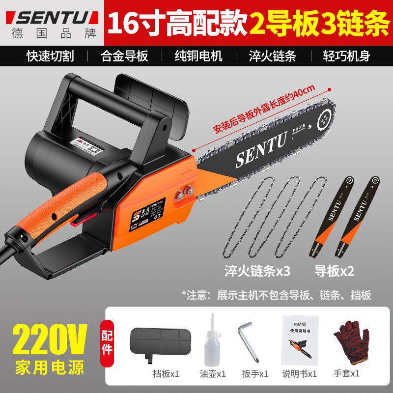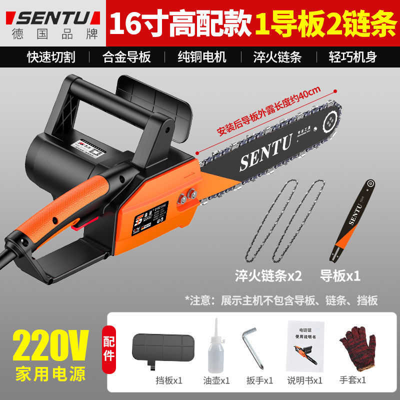 • 16inch 업그레이드된 고급 버전 2개의 가이드 플레이트 + 2개의 체인 - 독일 SENTU 플러그인 220V 전기 체인 톱