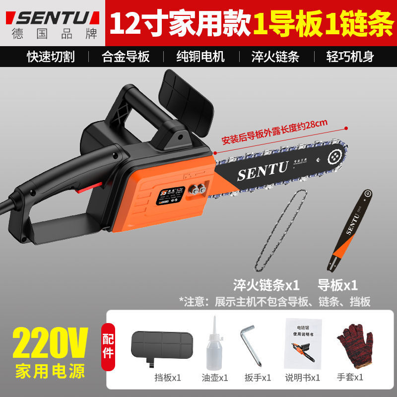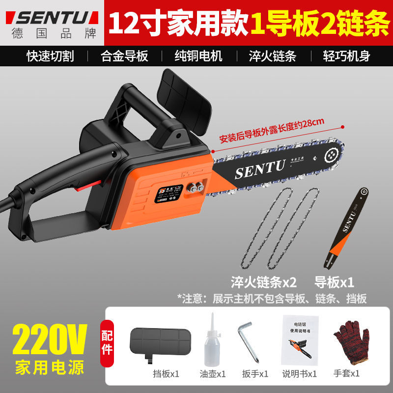• 12inch 가정용 모델 1 가이드 플레이트 + 1 체인 - 독일 SENTU 플러그인 220V 전기 체인 톱