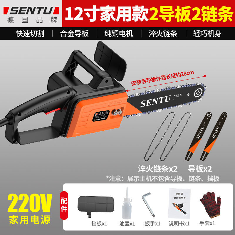 • 12inch 가정용 모델 1 가이드 플레이트 + 2 체인 - 독일 SENTU 플러그인 220V 전기 체인 톱