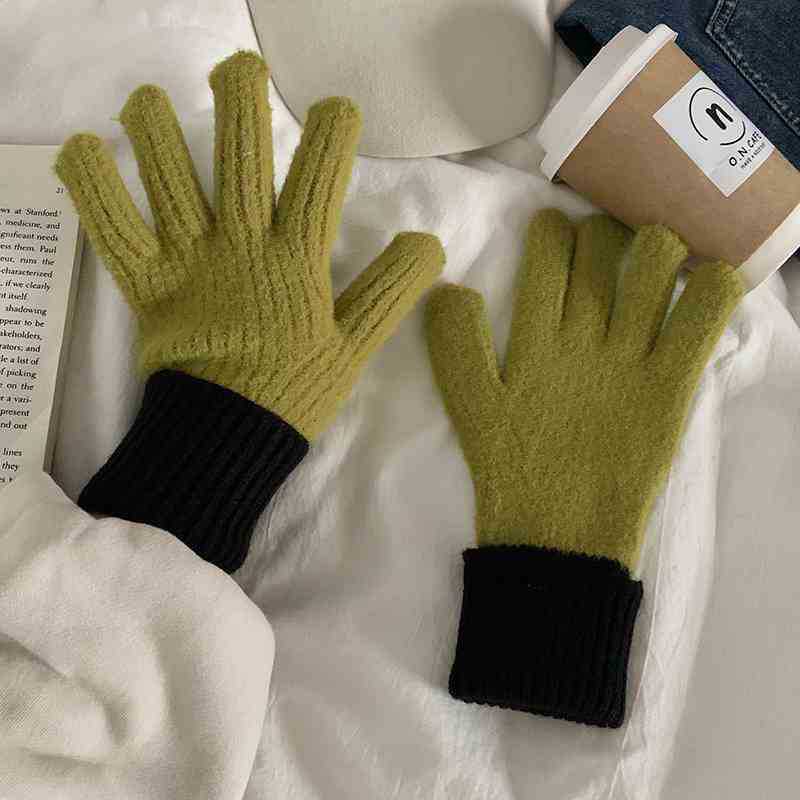 한국식 양모 장갑 트렌디 니트 캐시미어 장갑 여성용 겨울 새 터치 스크린 기모 따뜻한 두꺼운 감기용 손가락
