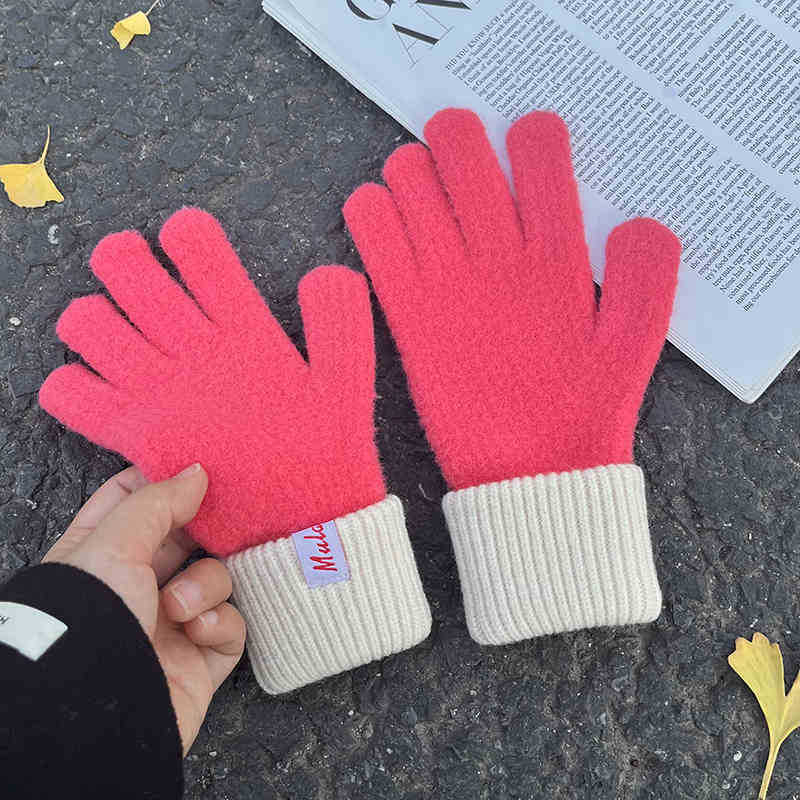 한국식 양모 장갑 트렌디 니트 캐시미어 장갑 여성용 겨울 새 터치 스크린 기모 따뜻한 두꺼운 감기용 손가락스토어 가기
