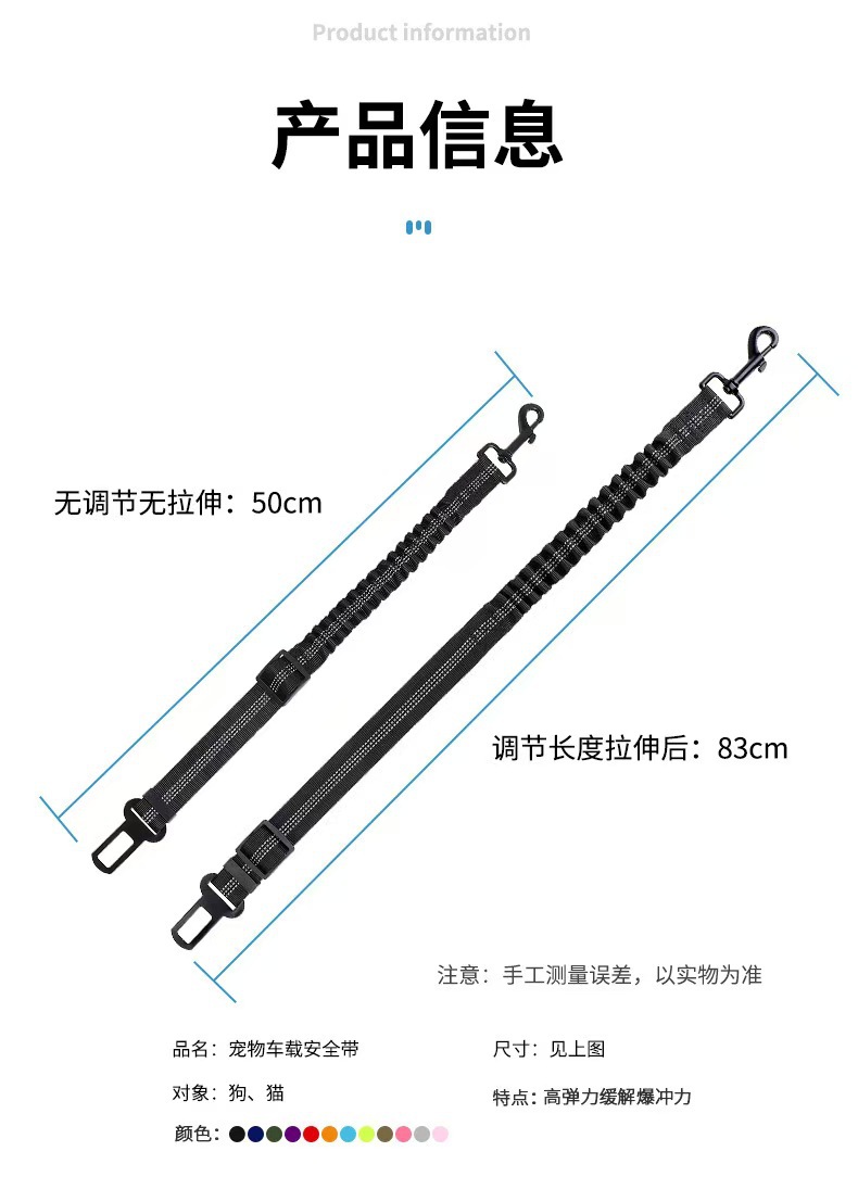 개 자동차 안전 벨트 애완 동물 자동차 로프 조정 가능한 자동차 안전 견인 로프 중소 및 대형 애완 동물 제품