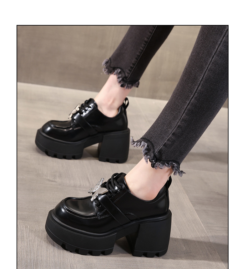 SJN939-7 작은 두꺼운 밑창 높은 로퍼 여성 가을 2024 새로운 스타일 부드러운 밑창 싱글 레이어 신발 트렌디스토어 가기