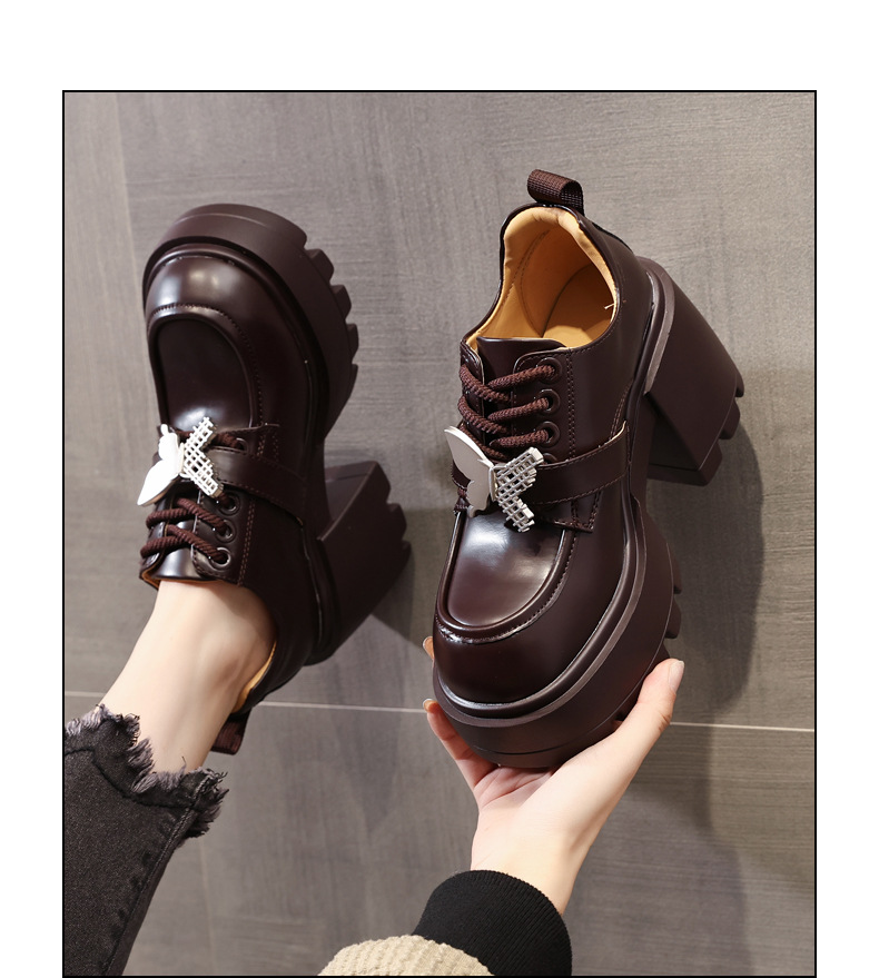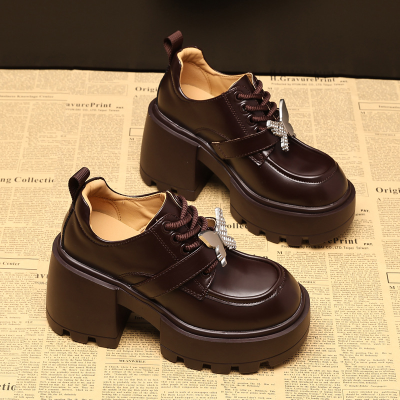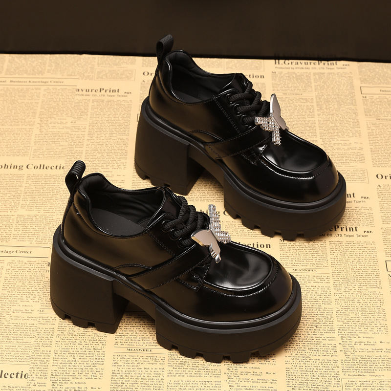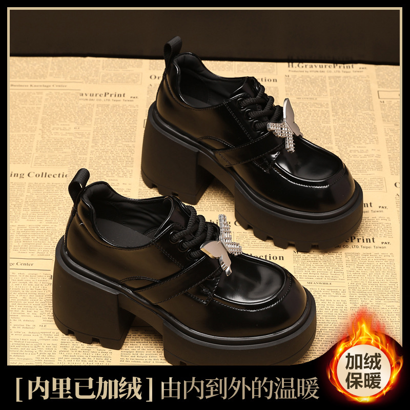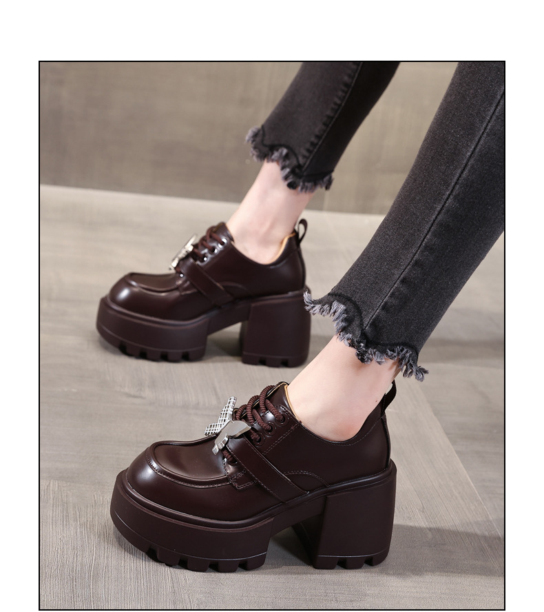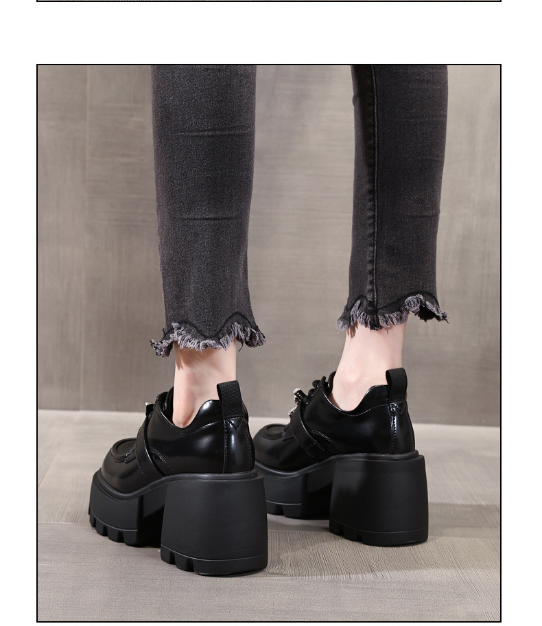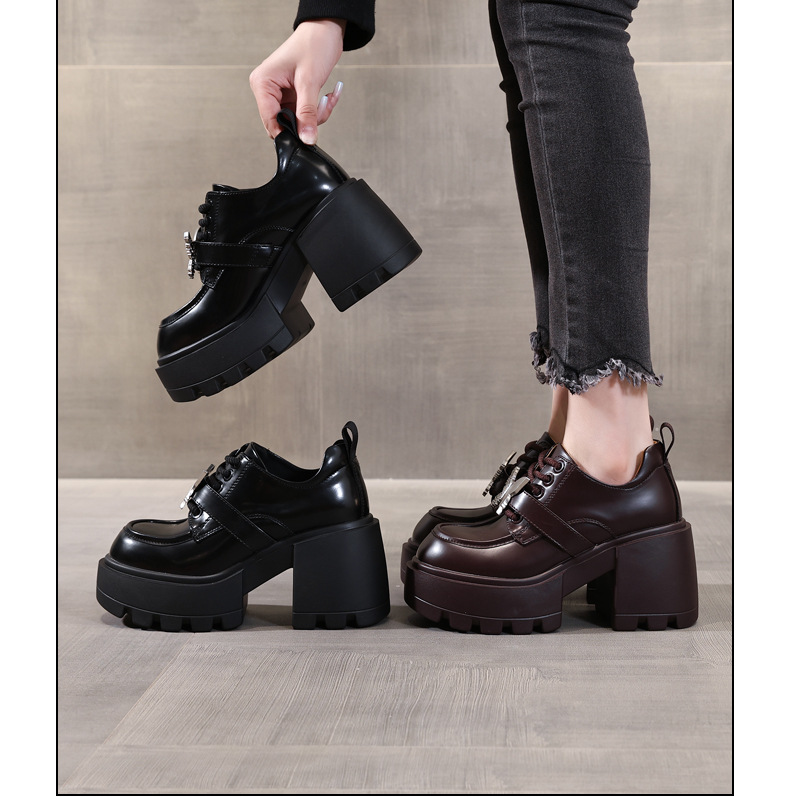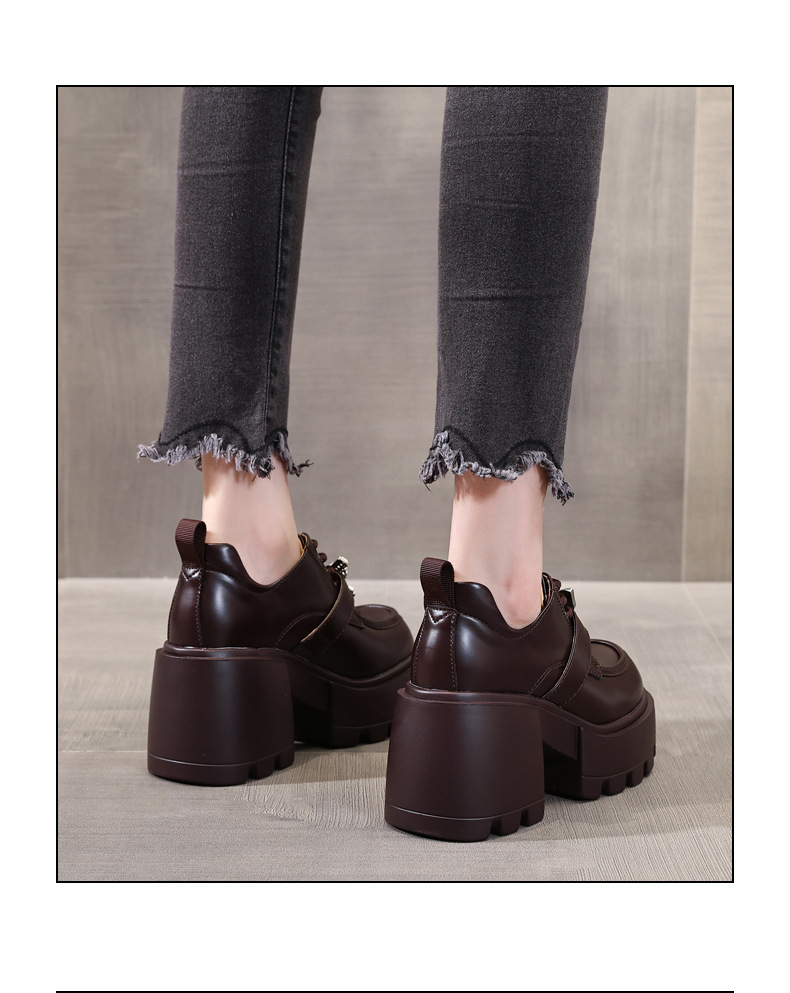 SJN939-7 작은 두꺼운 밑창 높은 로퍼 여성 가을 2024 새로운 스타일 부드러운 밑창 싱글 레이어 신발 트렌디