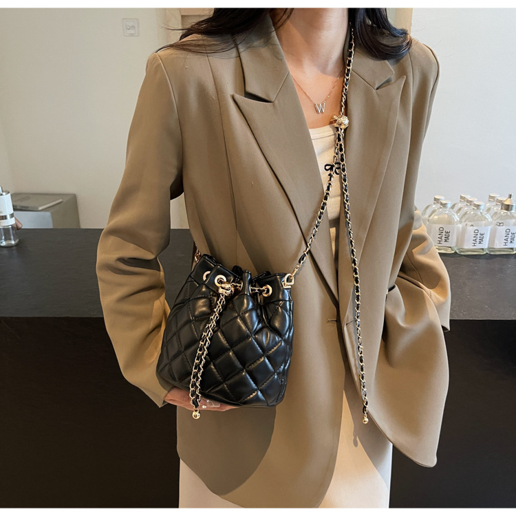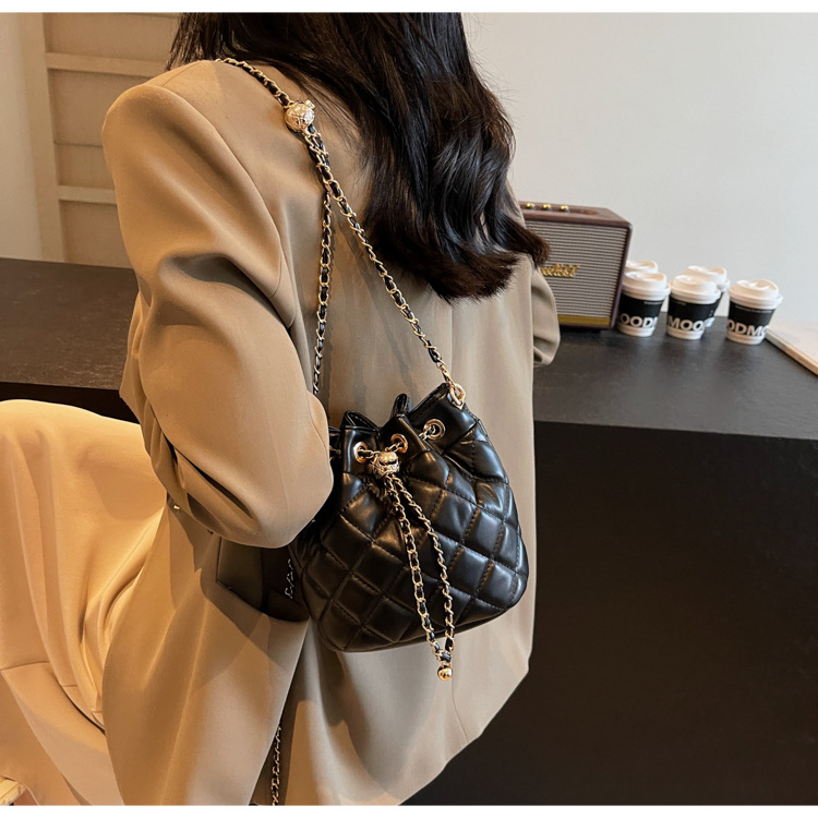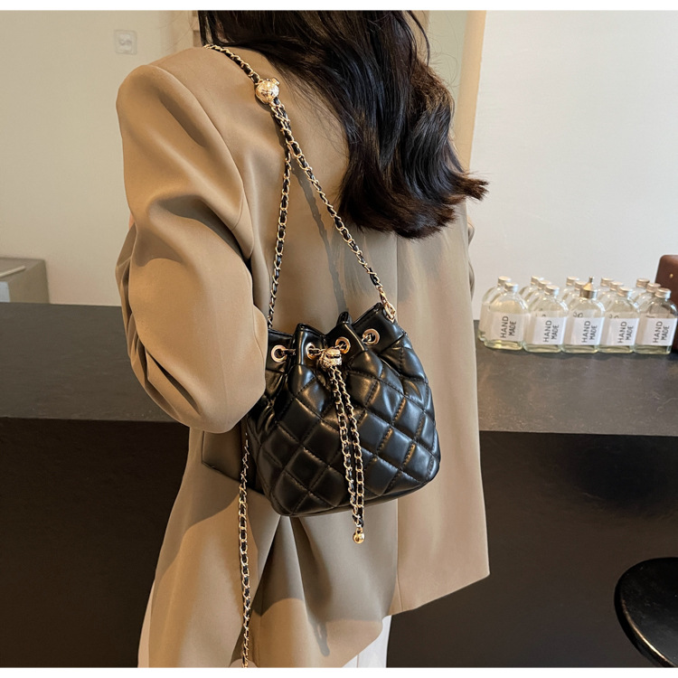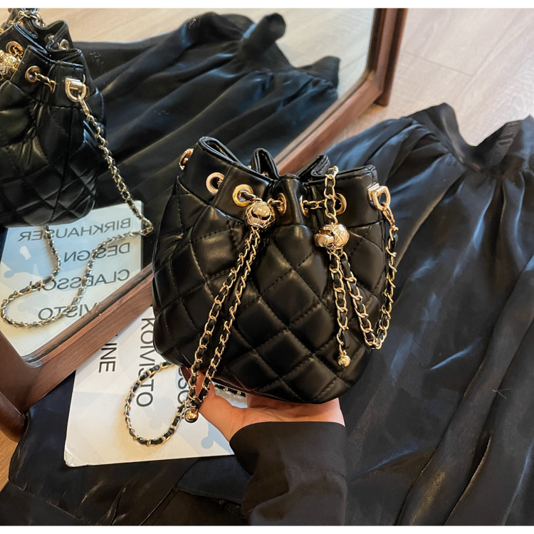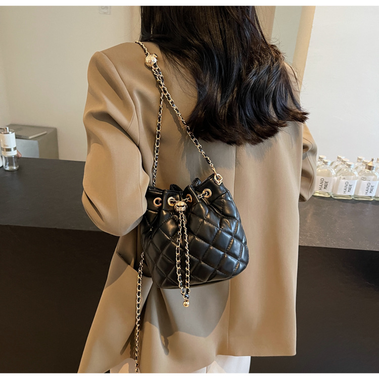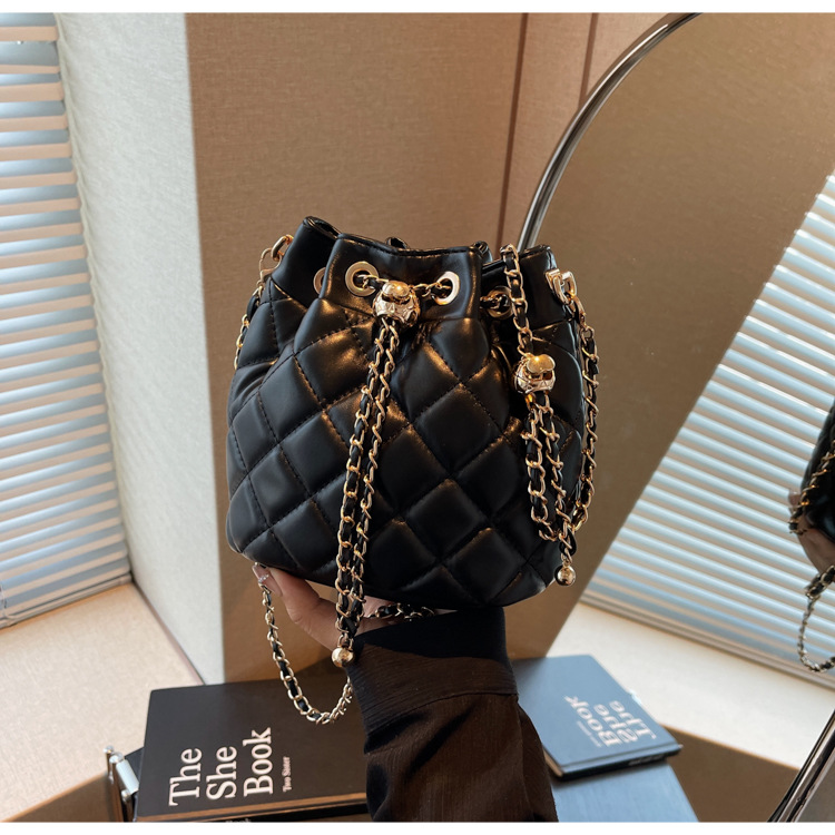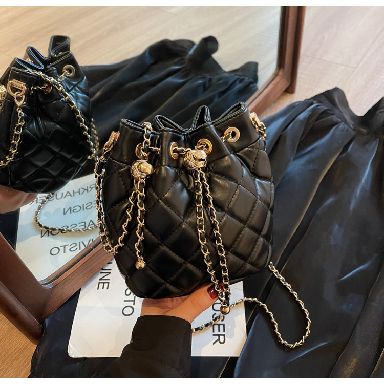 2026 신상 다이아몬드 체인 크로스백 스몰백 드로우스트링 버킷백 라이트 럭셔리 원형 버킷백 숄더백 크로스백 여성용스토어 가기
