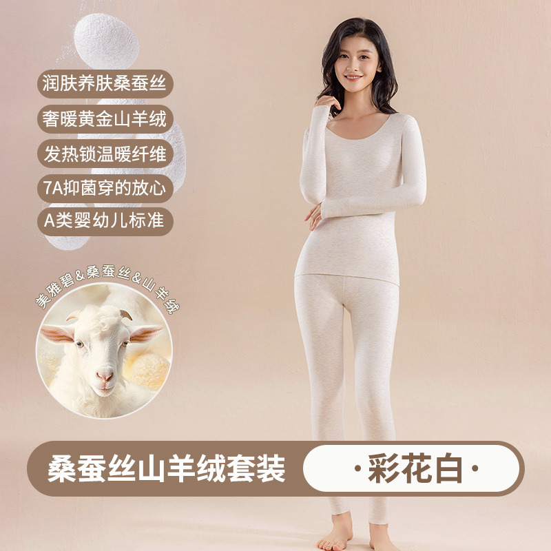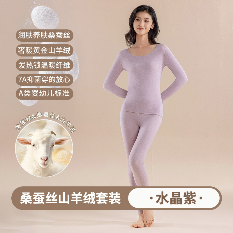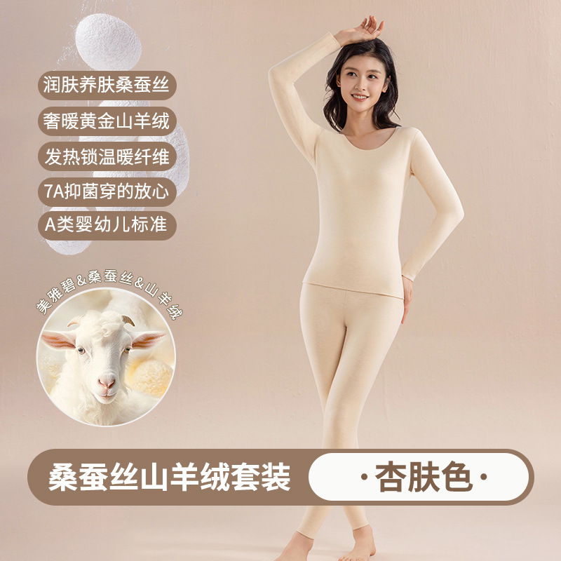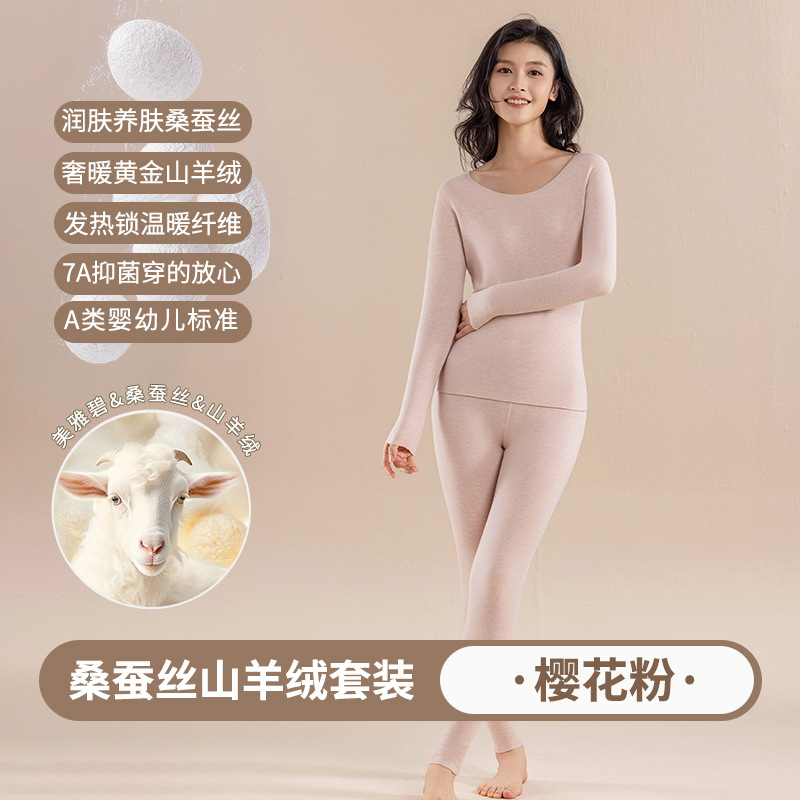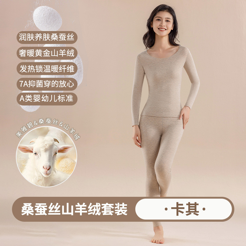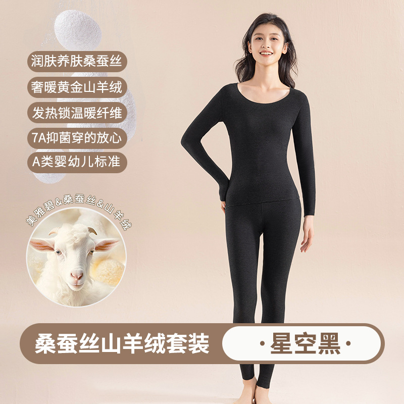 캐시미어 실크 벨벳 열 속옷 여성용 세트 7A 항균 두꺼운 난방 가을 옷 가을 바지 따뜻한 옷스토어 가기