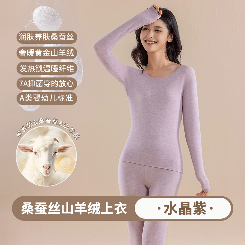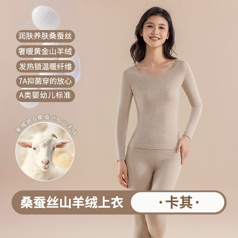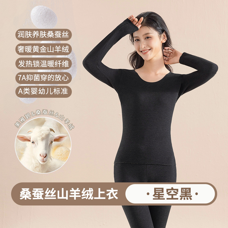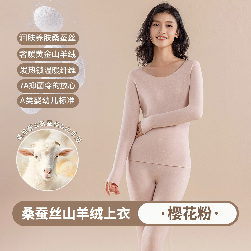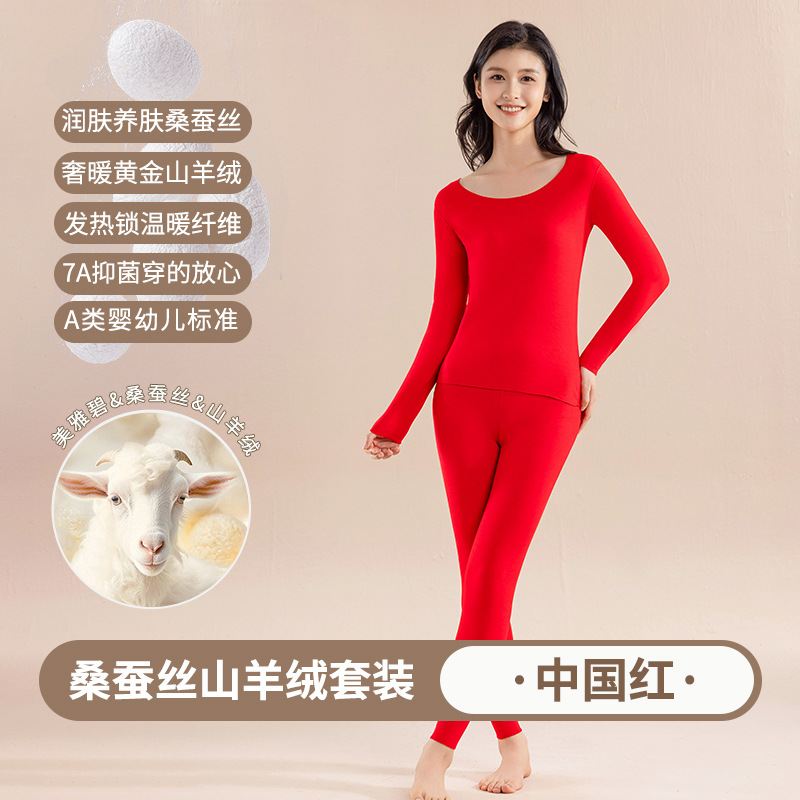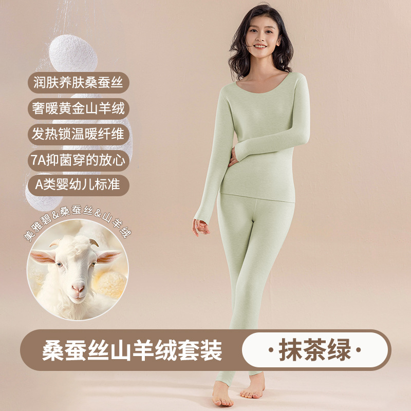 캐시미어 실크 벨벳 열 속옷 여성용 세트 7A 항균 두꺼운 난방 가을 옷 가을 바지 따뜻한 옷스토어 가기