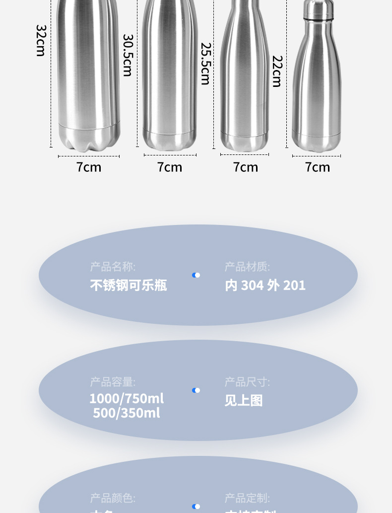 소스 공장 더블 스테인레스 스틸 대용량 절연 콜라 병 진공 컵 페인트 플라스틱 총알 스포츠 주전자