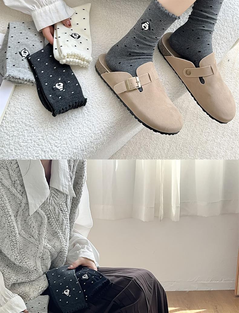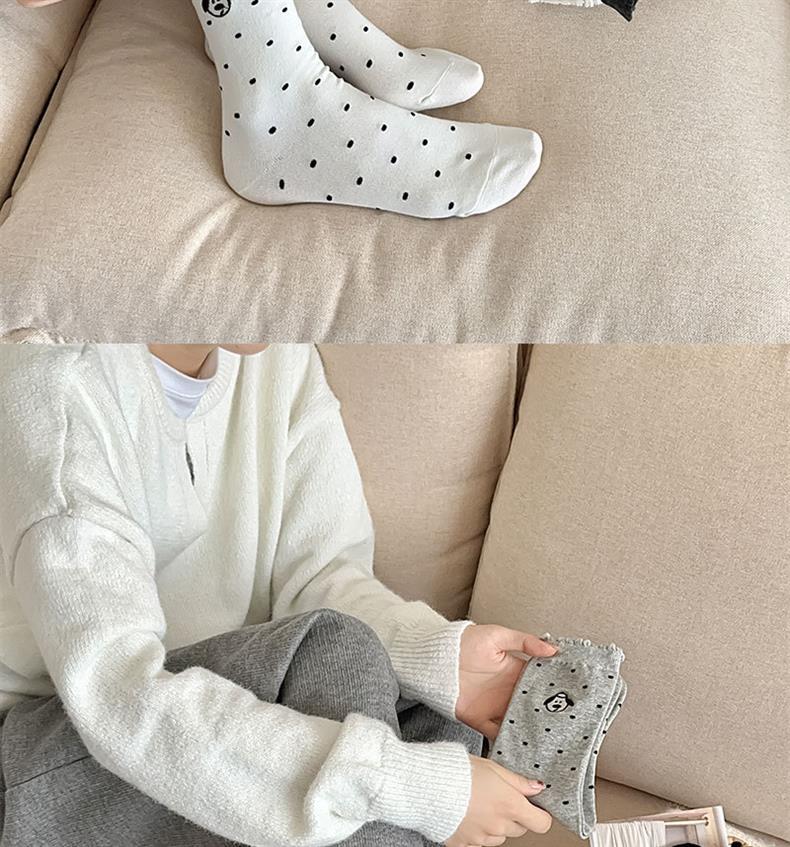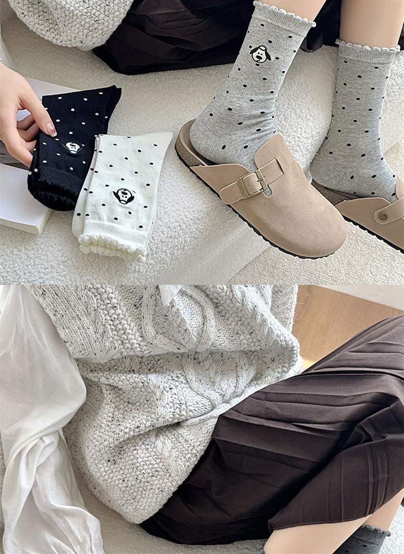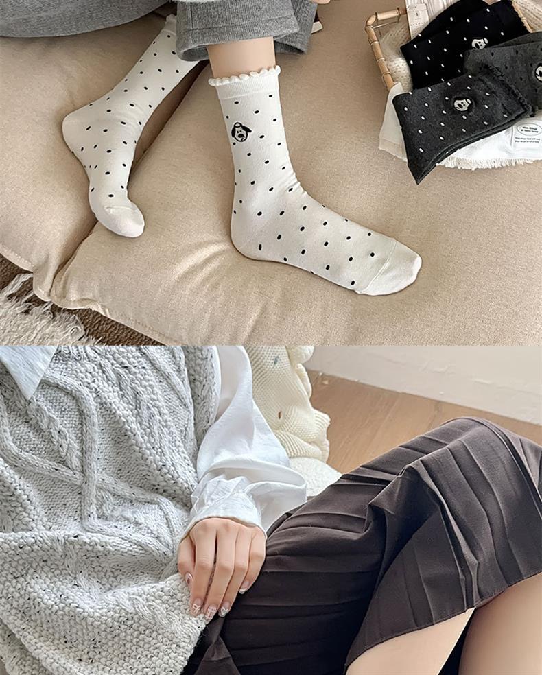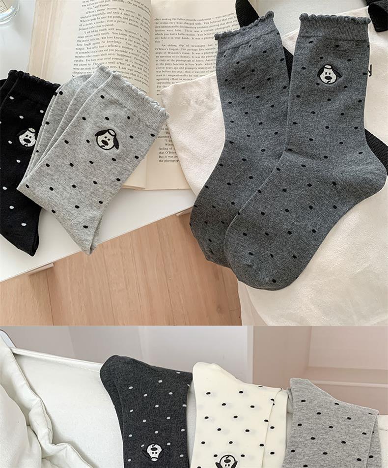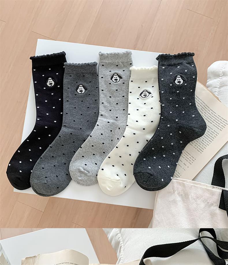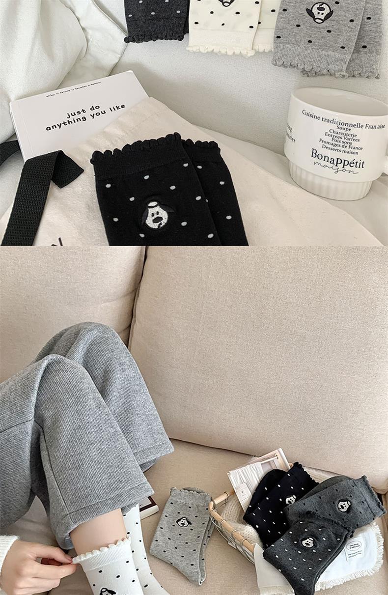 2024 양말 여성 초기 버블 입 가을과 겨울 뉴 웨이브 도트 자수 강아지 레이스 코튼 미드 튜브 여성용 양말스토어 가기