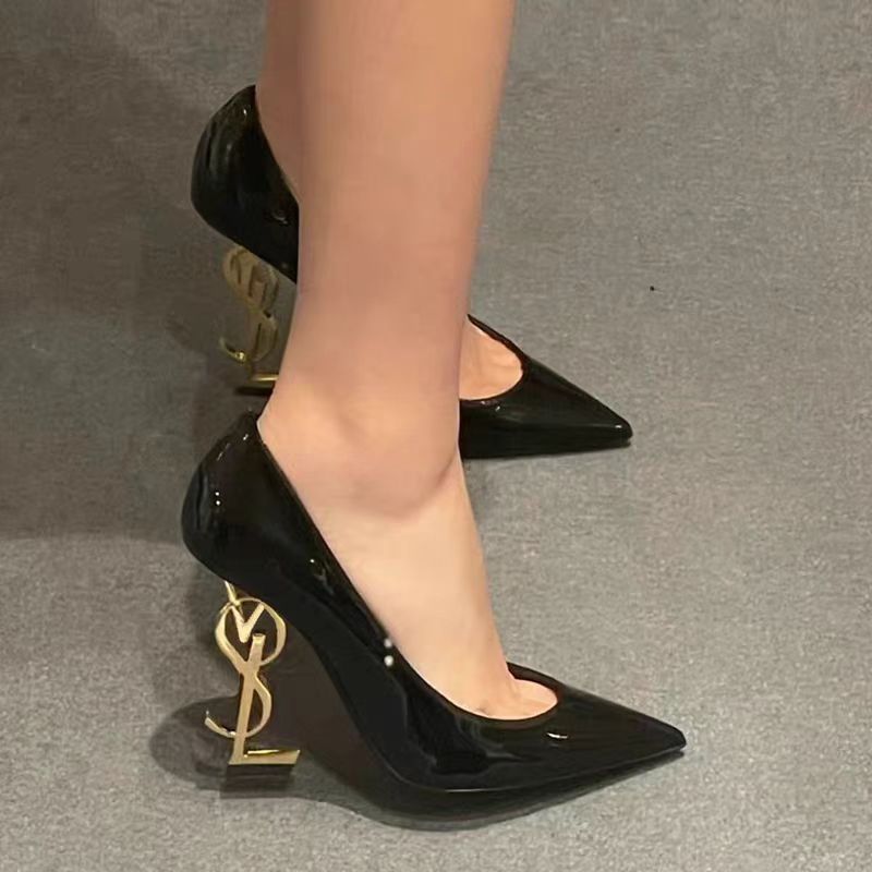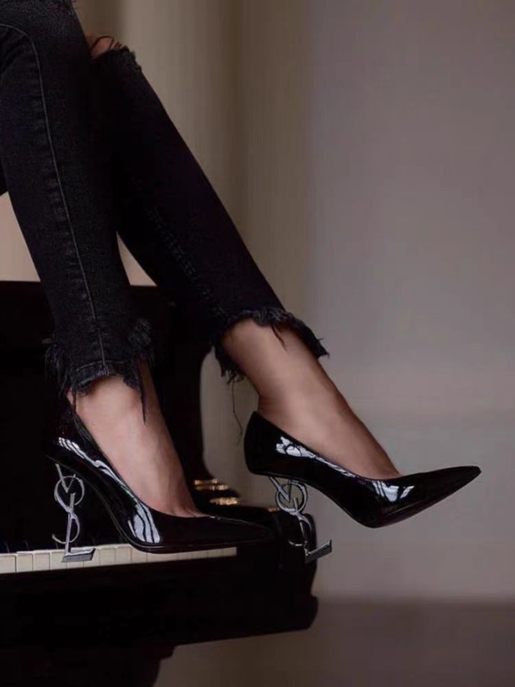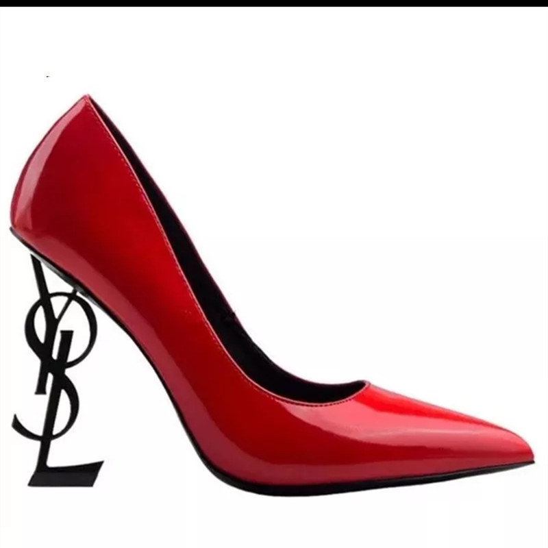 편지 하이힐 여성 정품 가죽 얕은 입 하이힐 여성용 플러스 사이즈 신발 뾰족한 스틸레토 힐 블랙 특허 가죽 신발 여성 신발스토어 가기