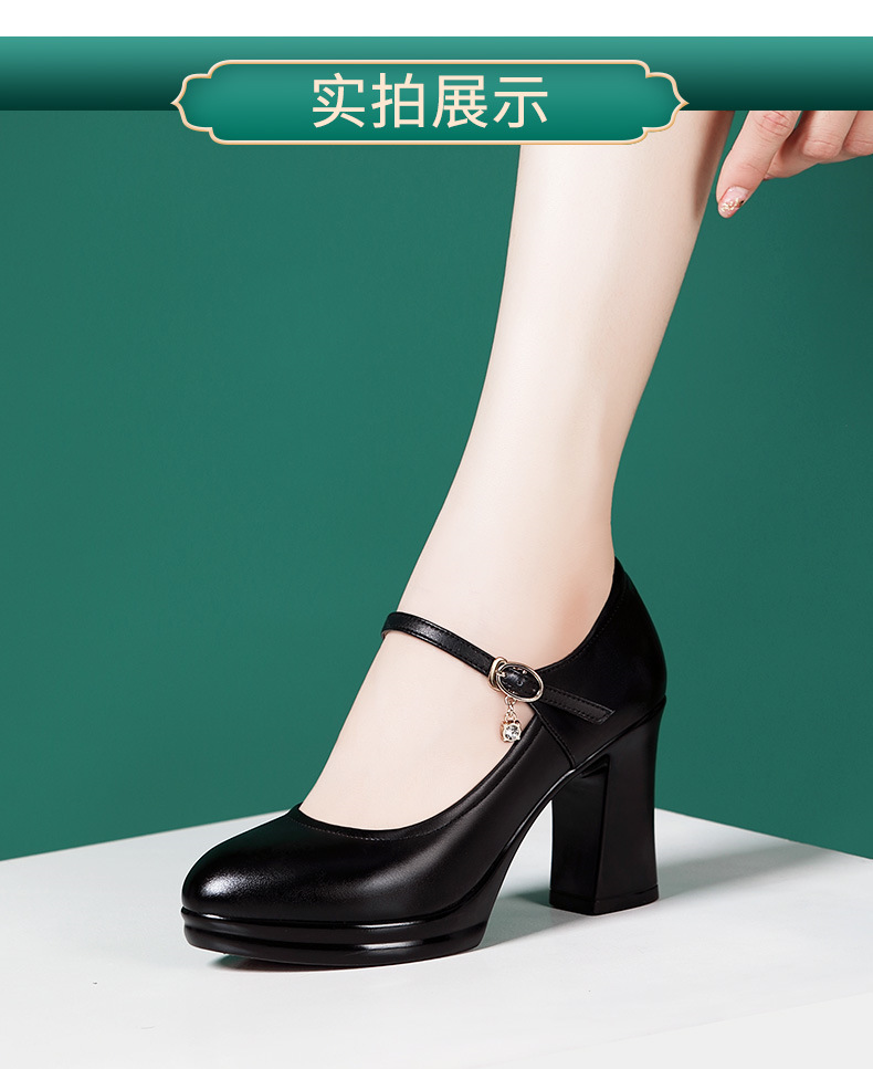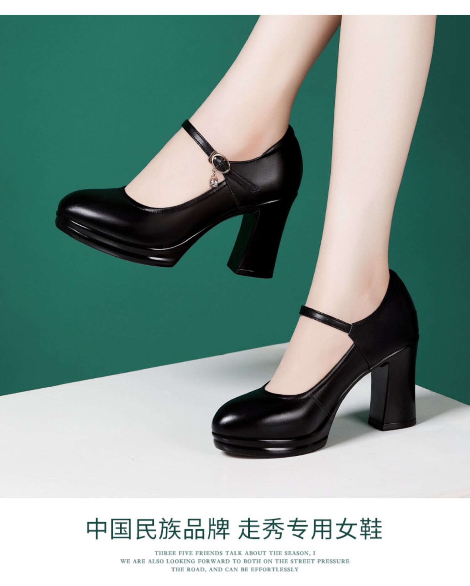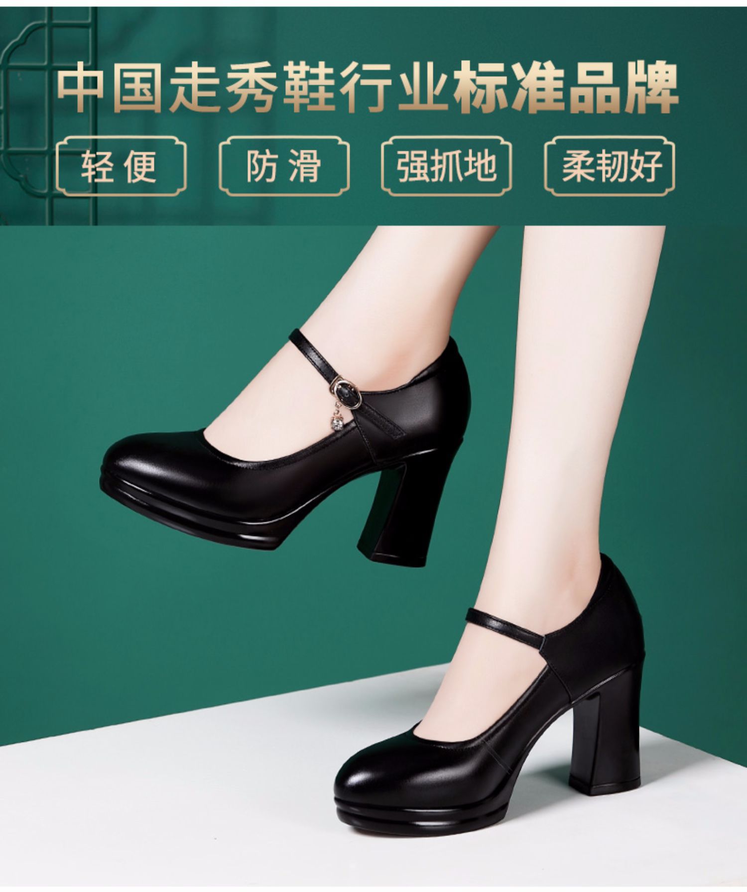 편안한 모델 치파오 워킹쇼 하이힐 여성용 부드러운 가죽 두꺼운 굽 라운드 토 방수 플랫폼 특수 블랙 작업화스토어 가기