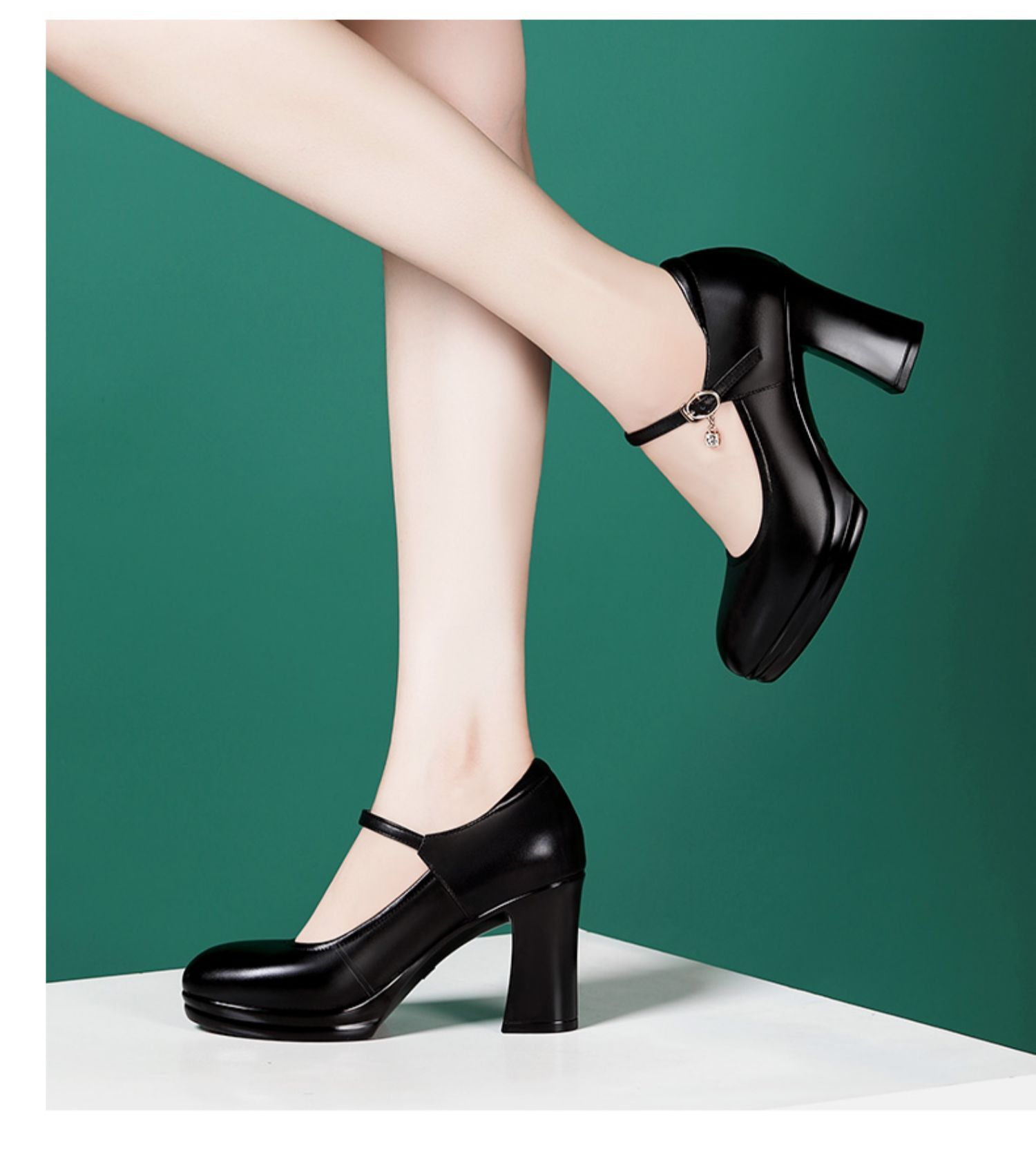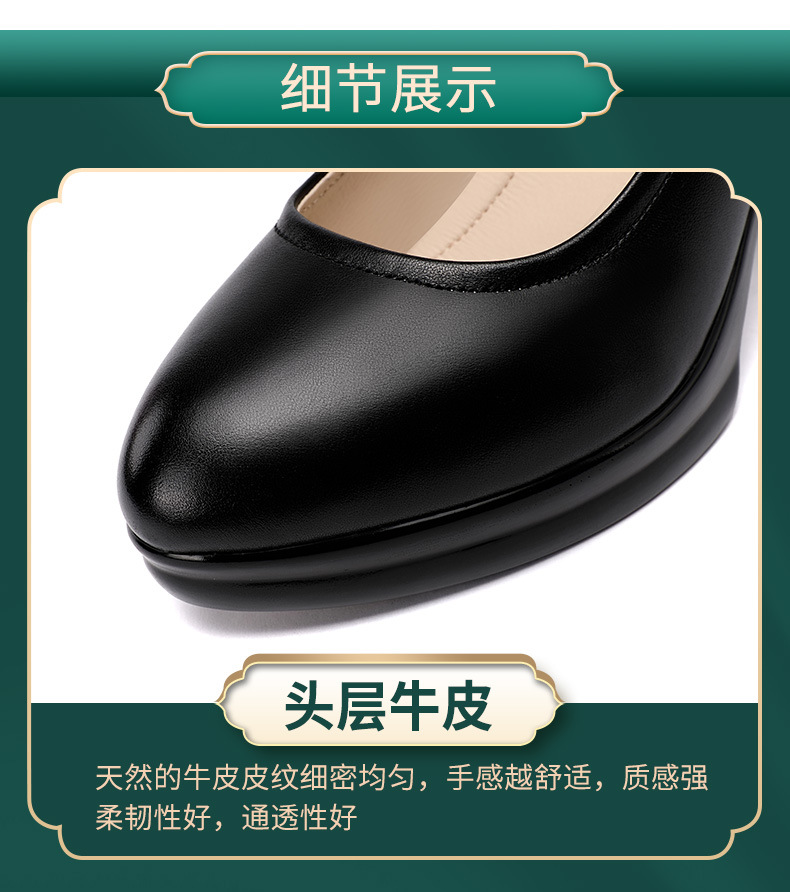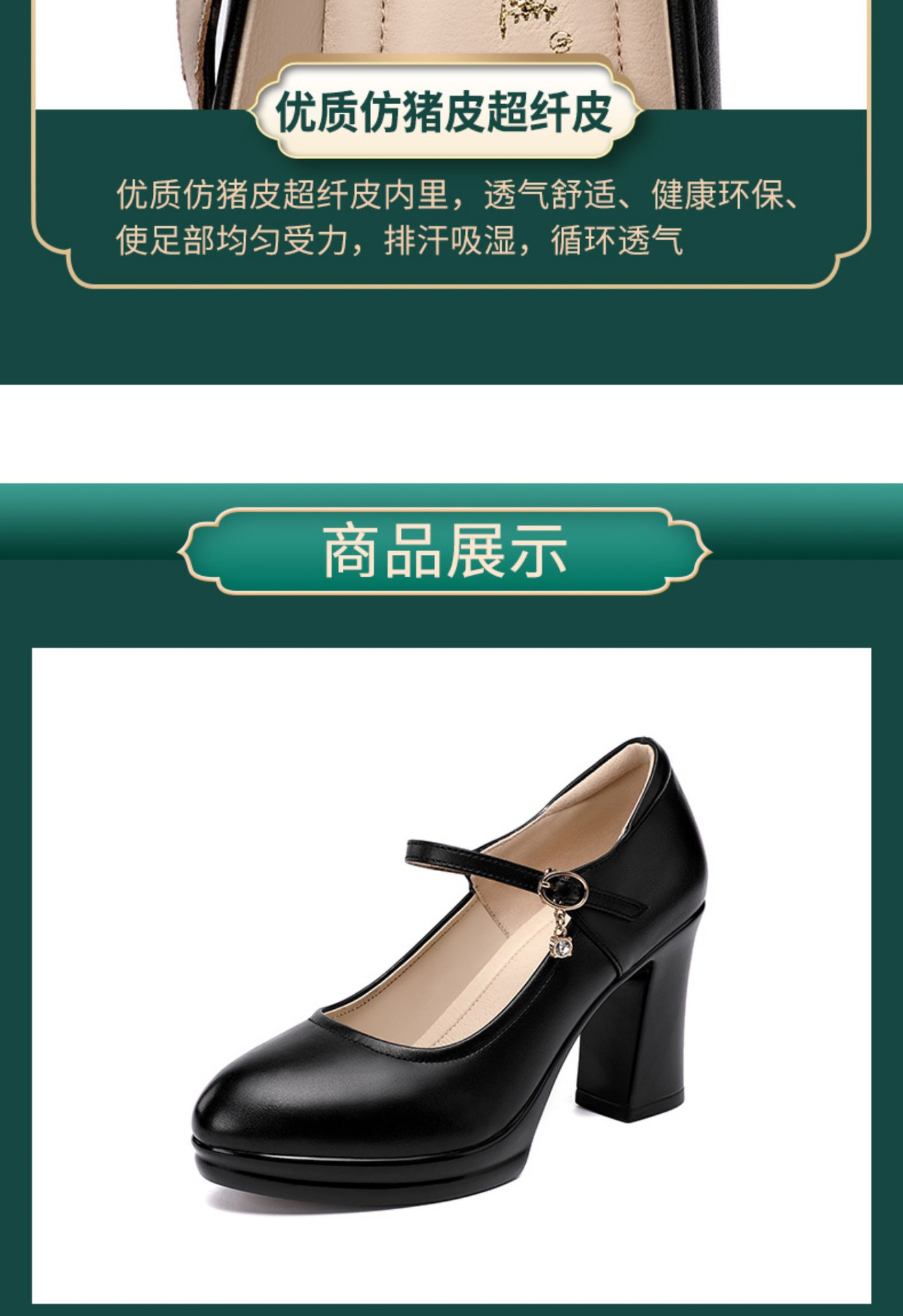 편안한 모델 치파오 워킹쇼 하이힐 여성용 부드러운 가죽 두꺼운 굽 라운드 토 방수 플랫폼 특수 블랙 작업화스토어 가기