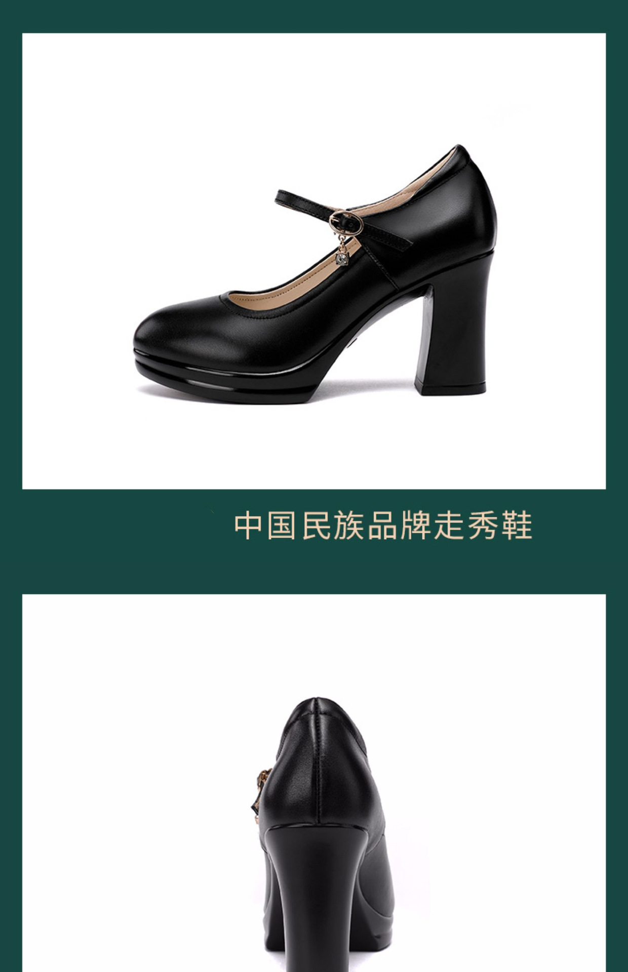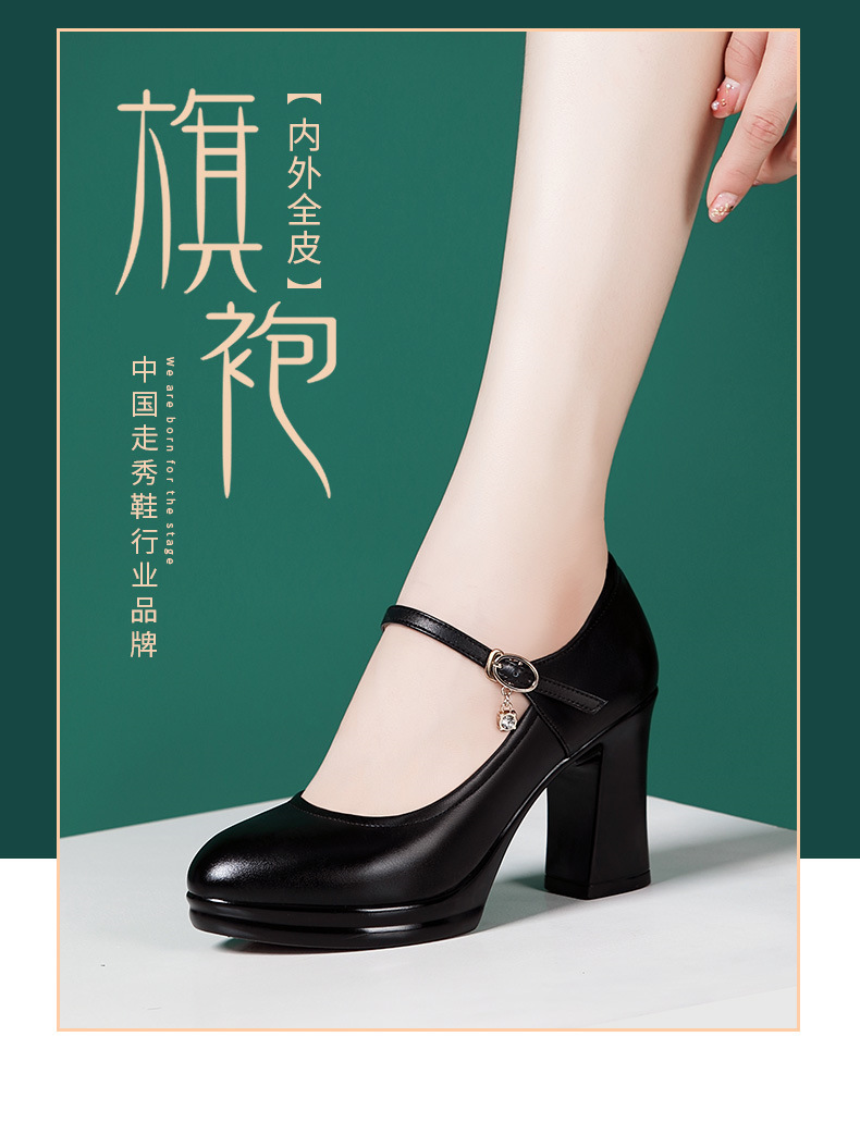 편안한 모델 치파오 워킹쇼 하이힐 여성용 부드러운 가죽 두꺼운 굽 라운드 토 방수 플랫폼 특수 블랙 작업화
