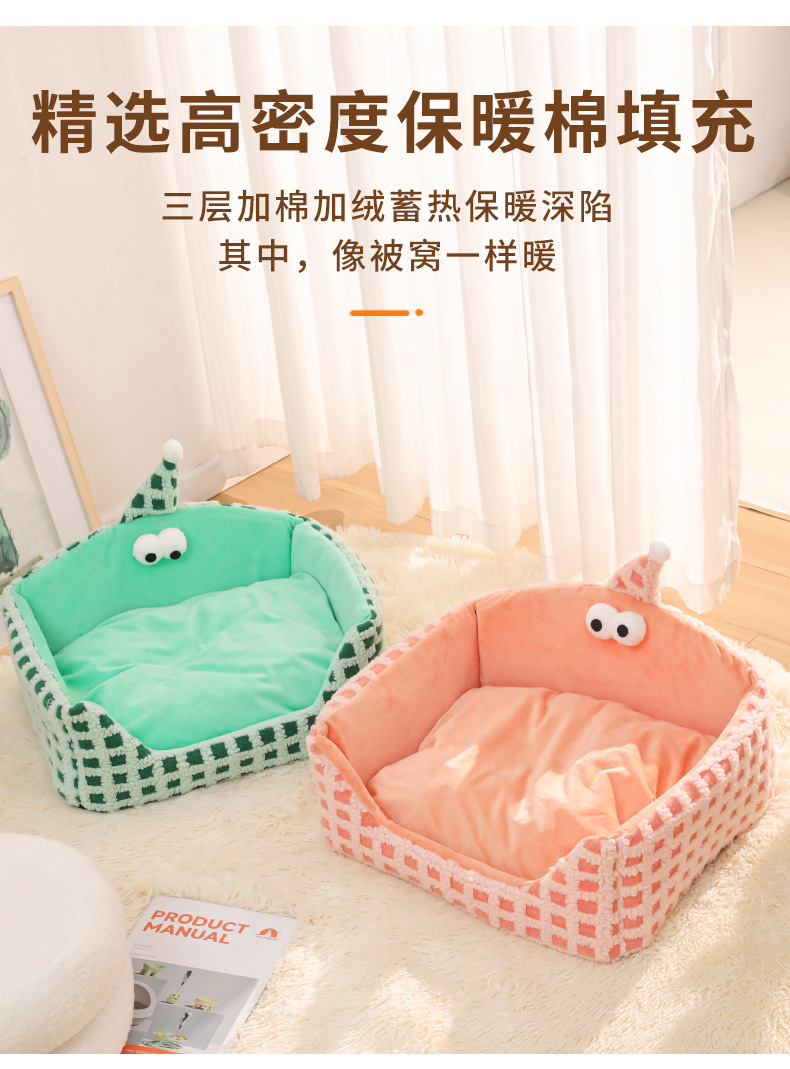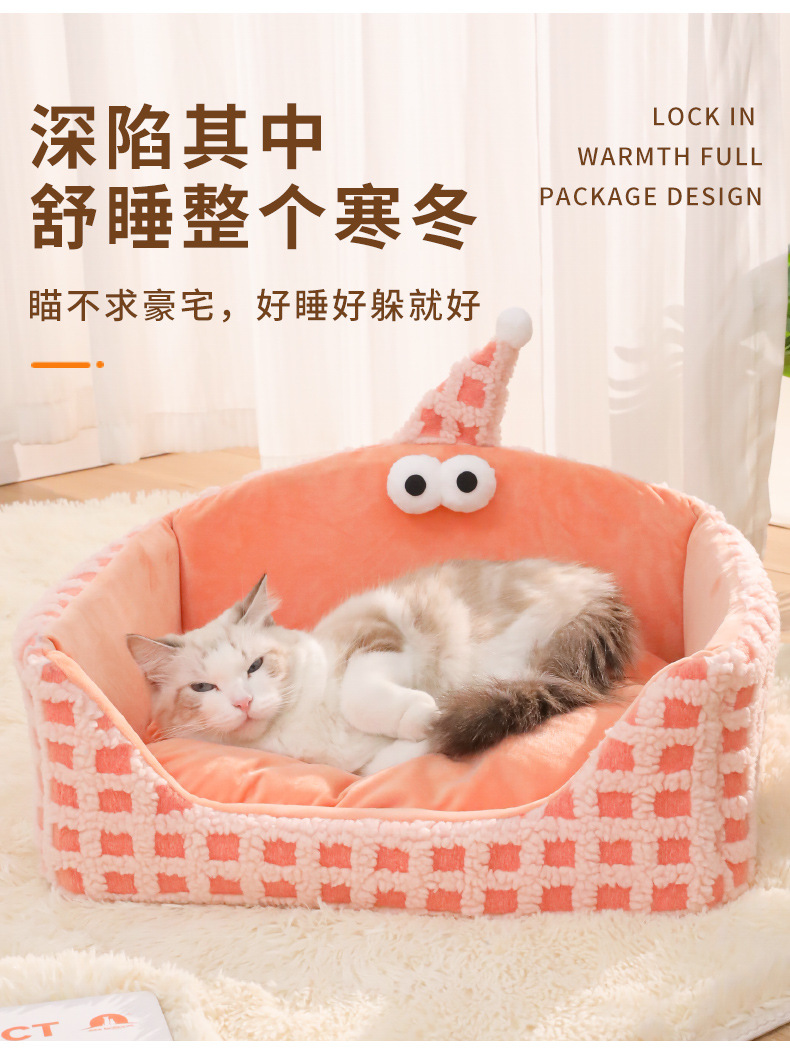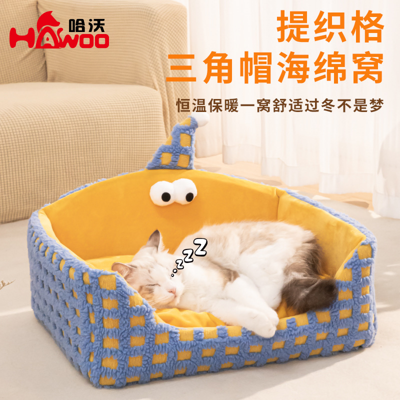 가을 겨울용 반밀폐형 고양이 침대, 직조 삼각 모자 스펀지 침대, 탈부착 및 세탁 가능, 따뜻한 강아지 침대