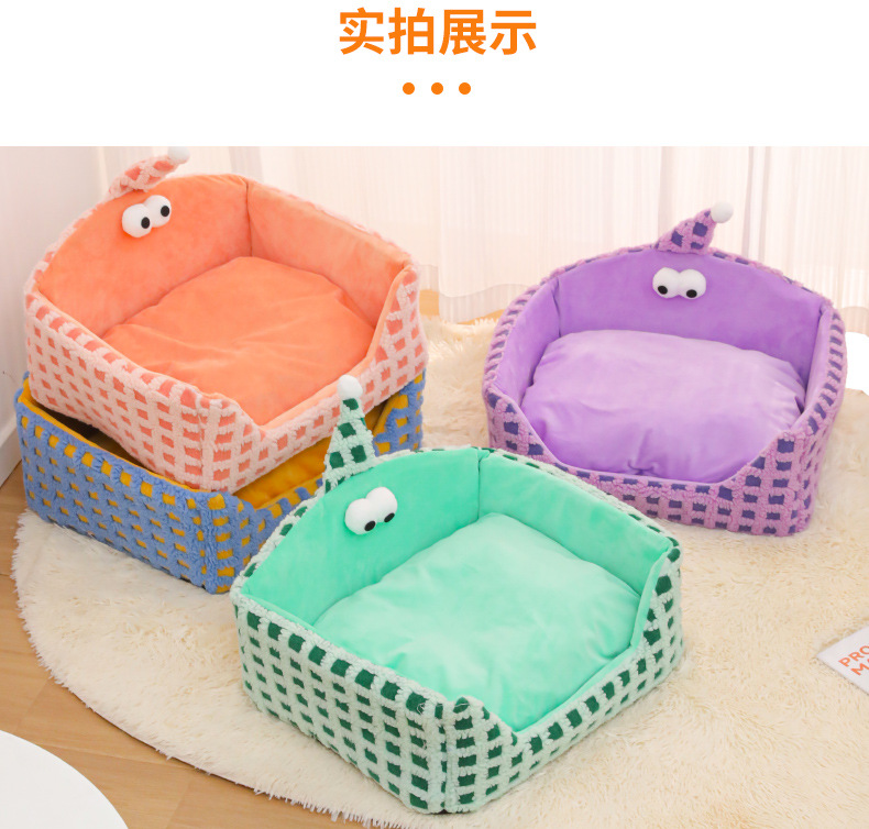 가을 겨울용 반밀폐형 고양이 침대, 직조 삼각 모자 스펀지 침대, 탈부착 및 세탁 가능, 따뜻한 강아지 침대스토어 가기