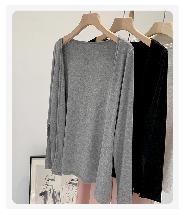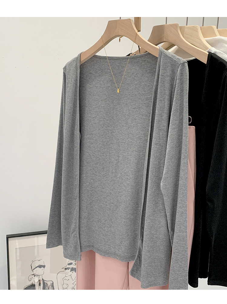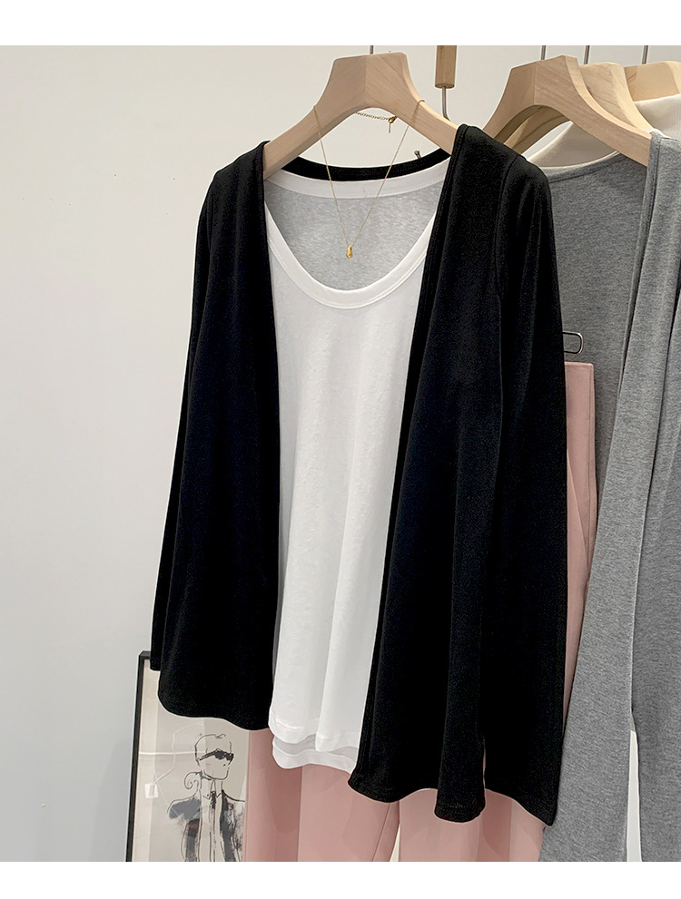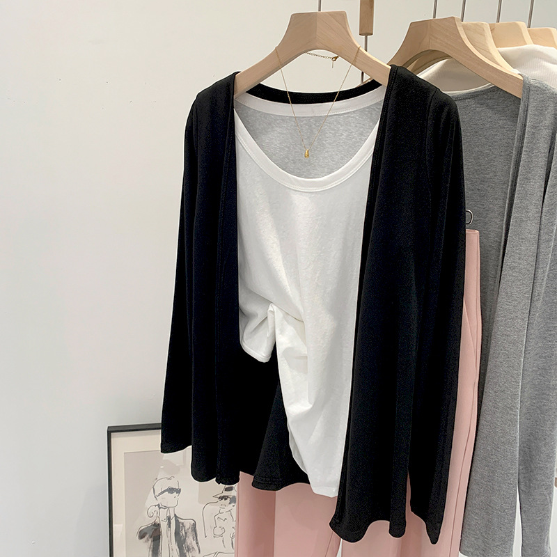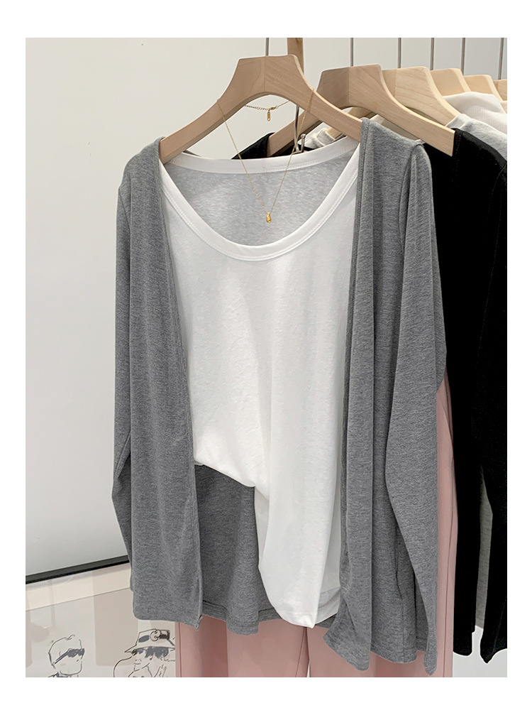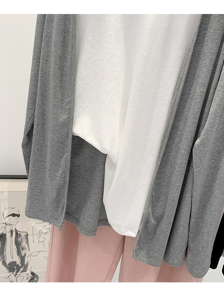 부드러운 한국 스타일 회색 니트 카디건 여성의 봄과 가을 느슨한 캐주얼 선 스크린베이스 셔츠 코트 긴 소매 탑