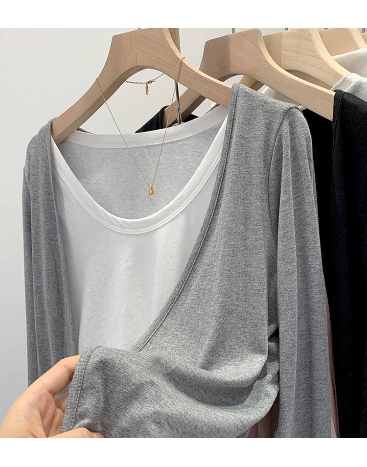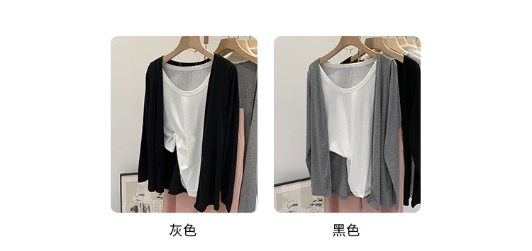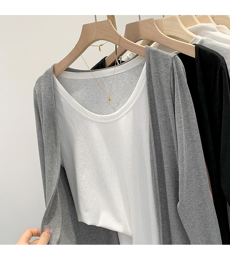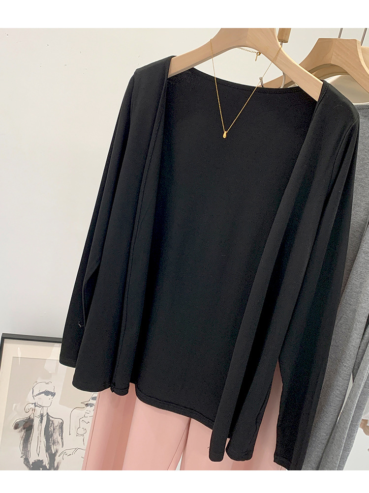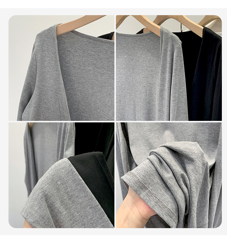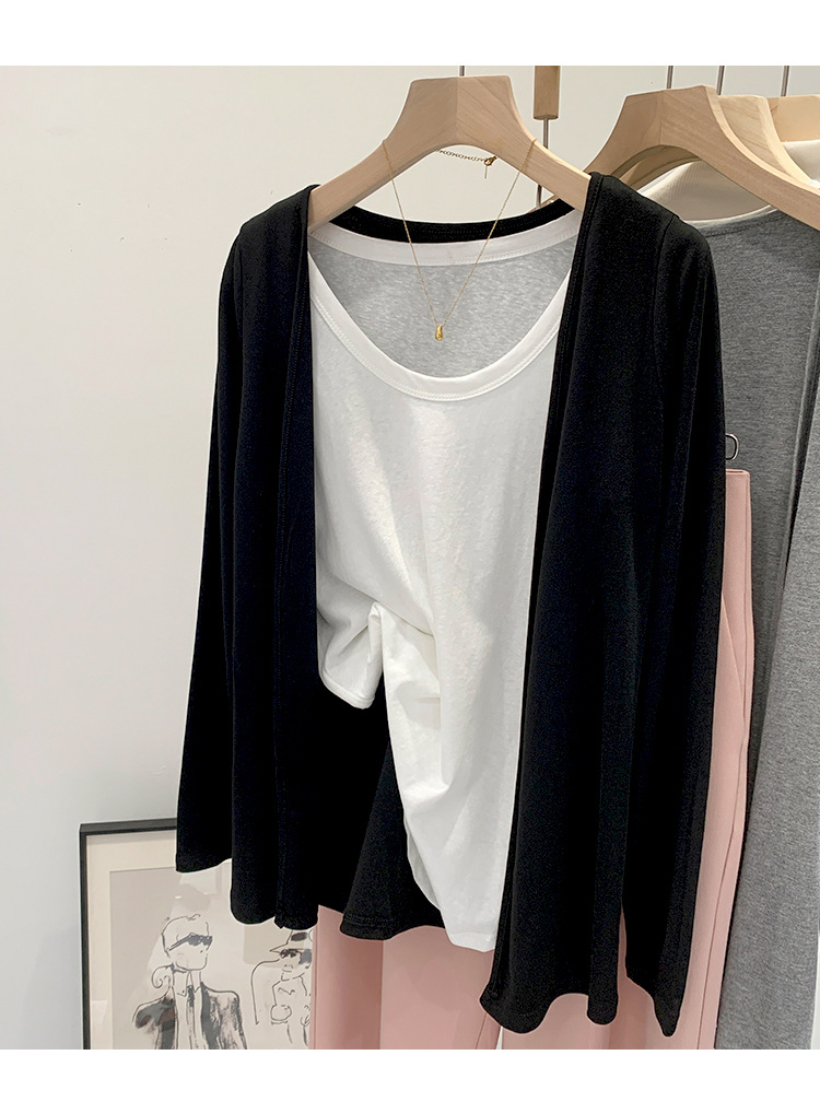 부드러운 한국 스타일 회색 니트 카디건 여성의 봄과 가을 느슨한 캐주얼 선 스크린베이스 셔츠 코트 긴 소매 탑