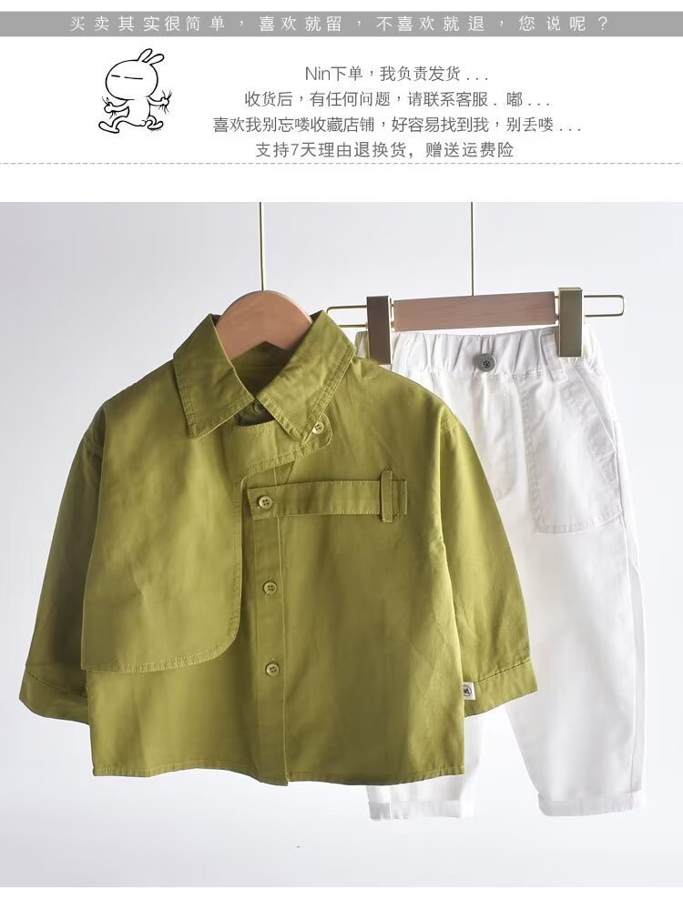 TikTok New Boys 'Shirt 세트 인터넷 인기 소년 서양식 패셔너블 아기 캐주얼 긴 소매 톱 한국 스타일