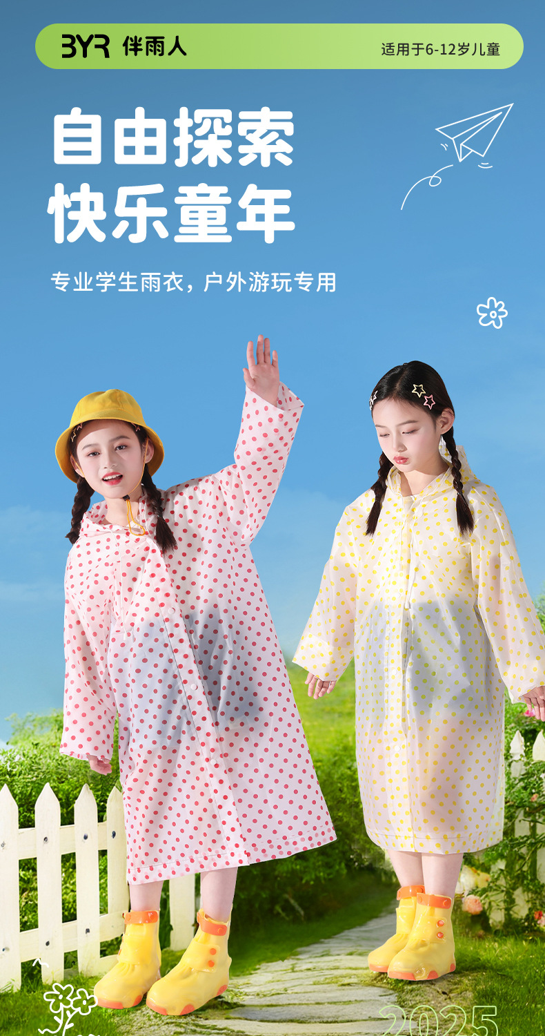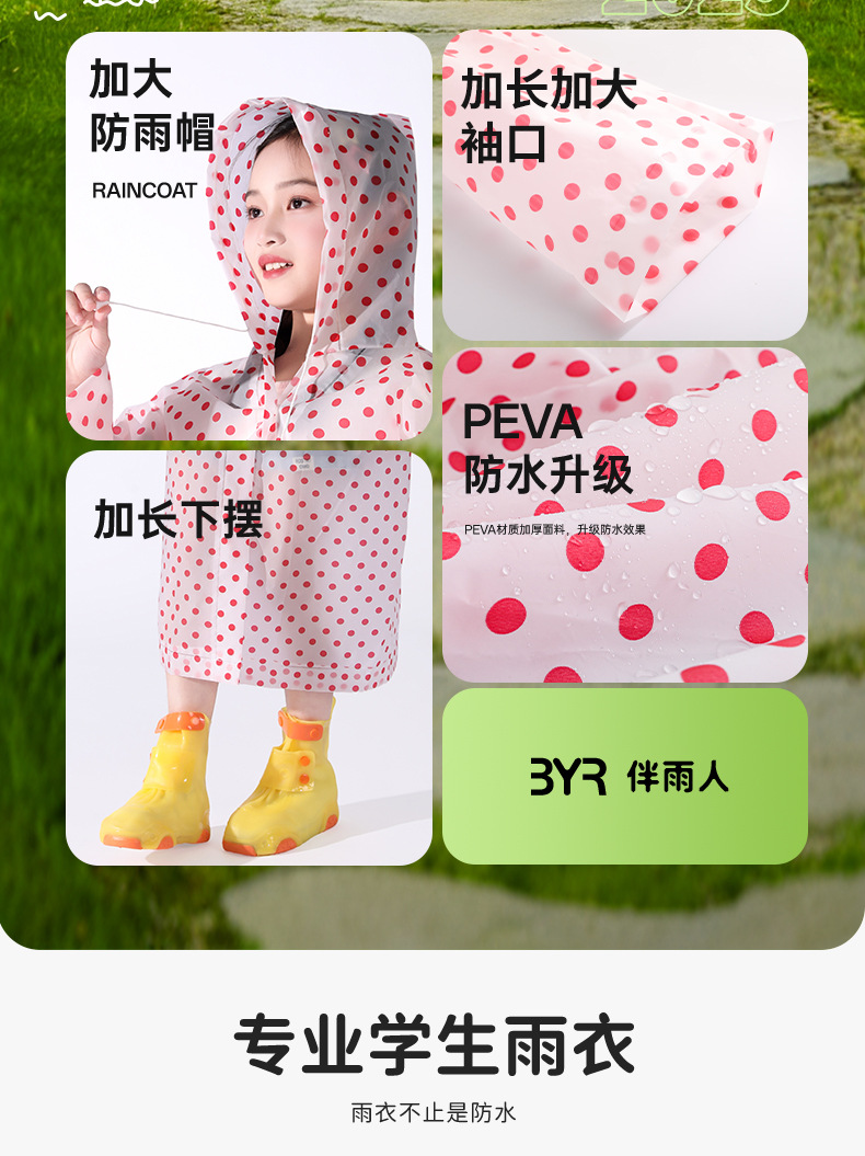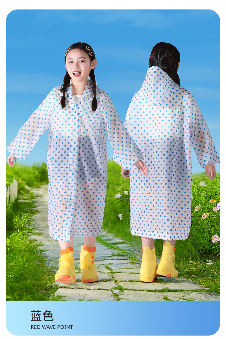 초등학생과 중학생을 위한 어린이 도트무늬 판초, 비오는 날 전체 몸을 위한 특수 긴 방수 및 통기성 판초스토어 가기