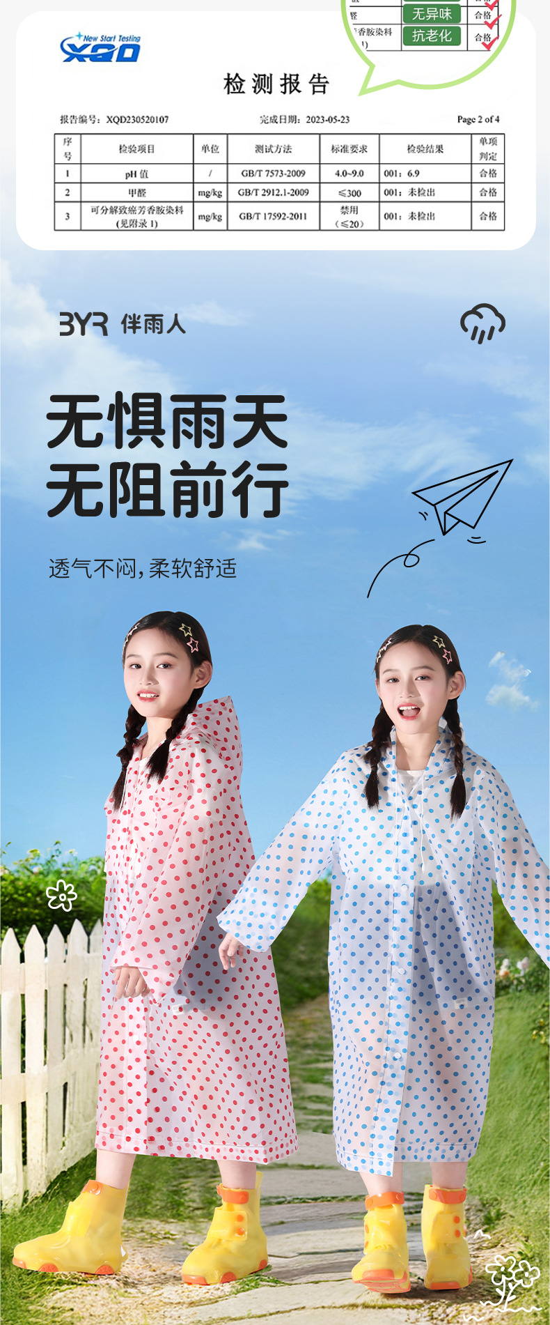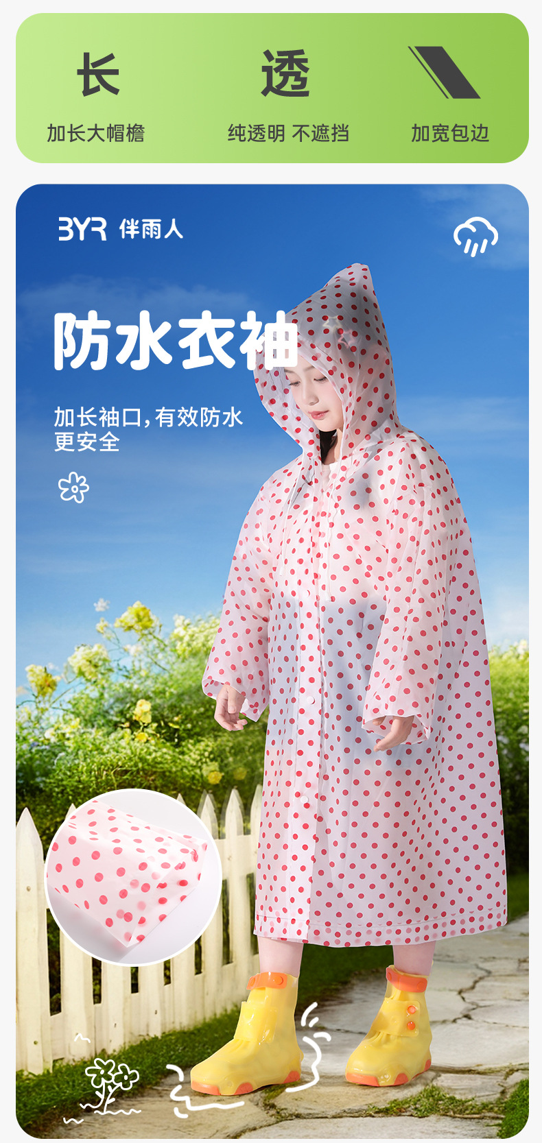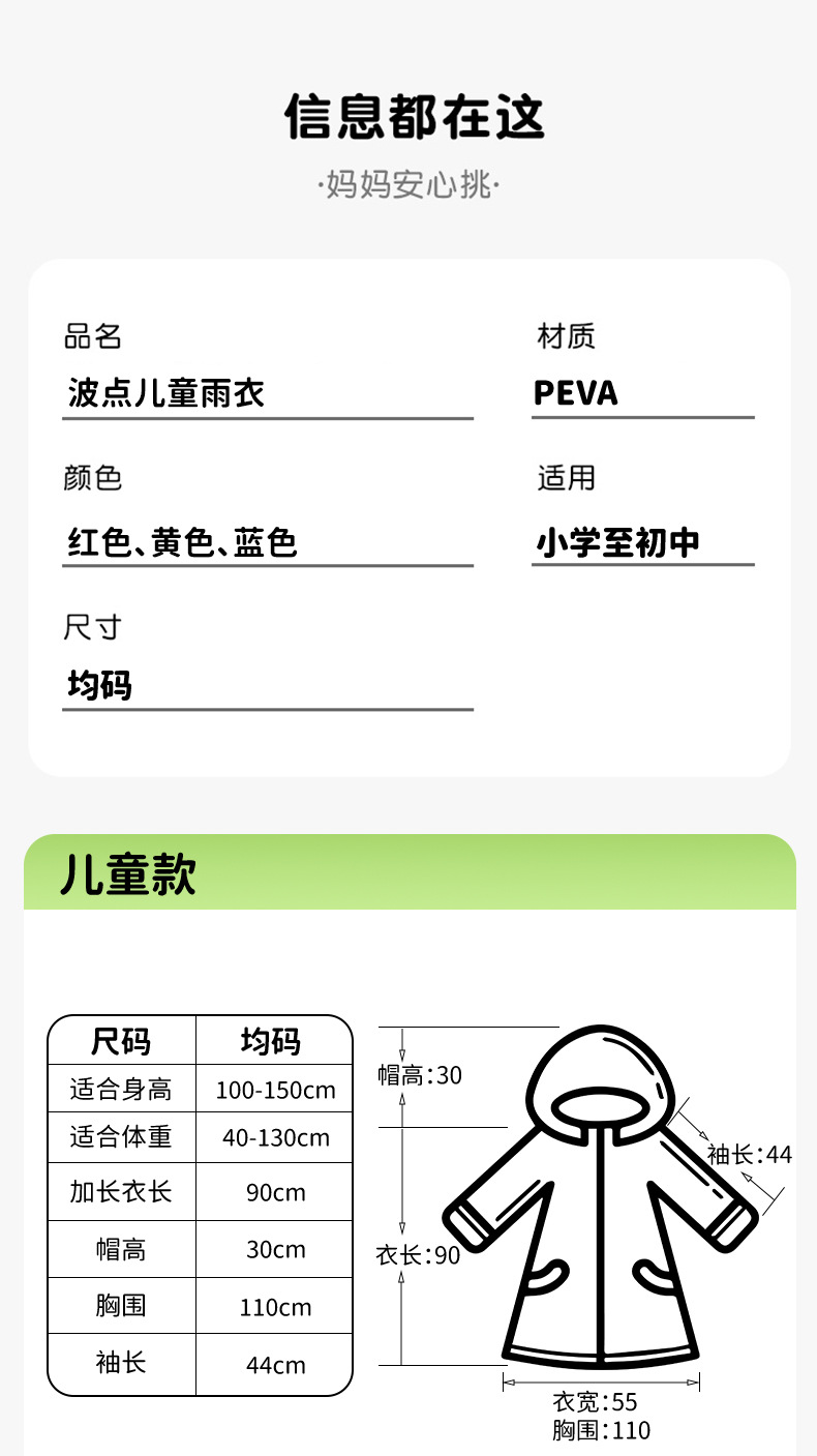 초등학생과 중학생을 위한 어린이 도트무늬 판초, 비오는 날 전체 몸을 위한 특수 긴 방수 및 통기성 판초스토어 가기