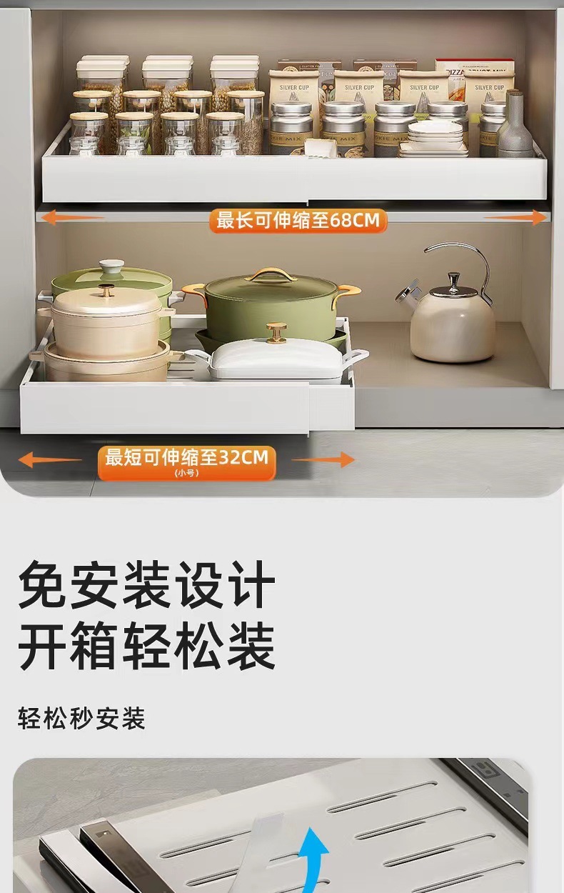 Liheng Punch 프리 개폐식 캐비닛 풀아웃 바구니 풀아웃 스토리지 랙 더 낮은 싱크 서랍 바구니 주방 스토리지 랙