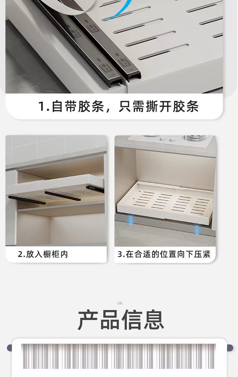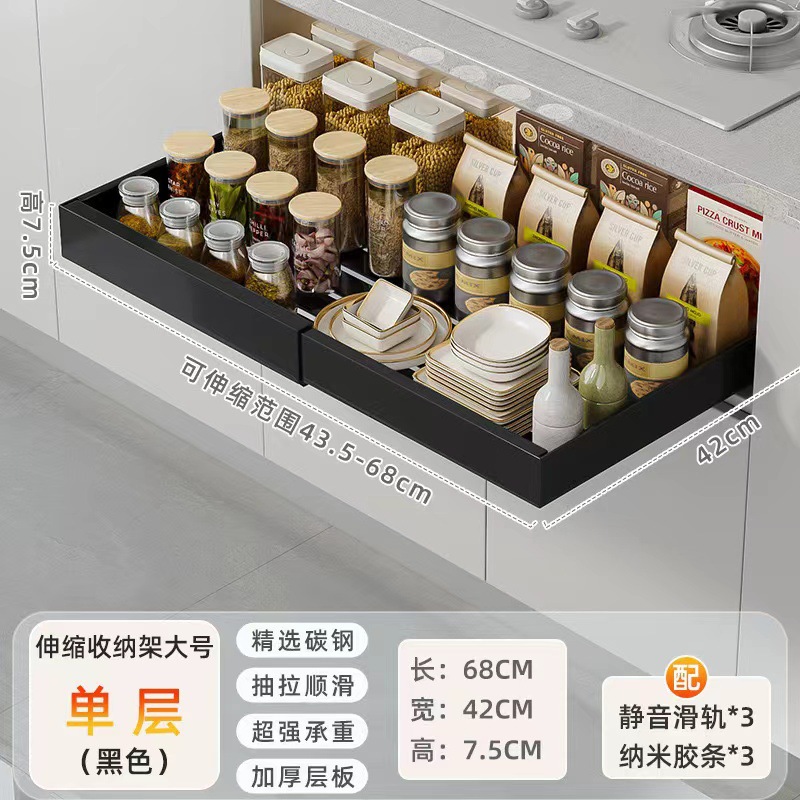 可伸缩缝隙挂钩免打孔厨房橱柜置物架冰箱侧挂抽拉磁吸收纳架