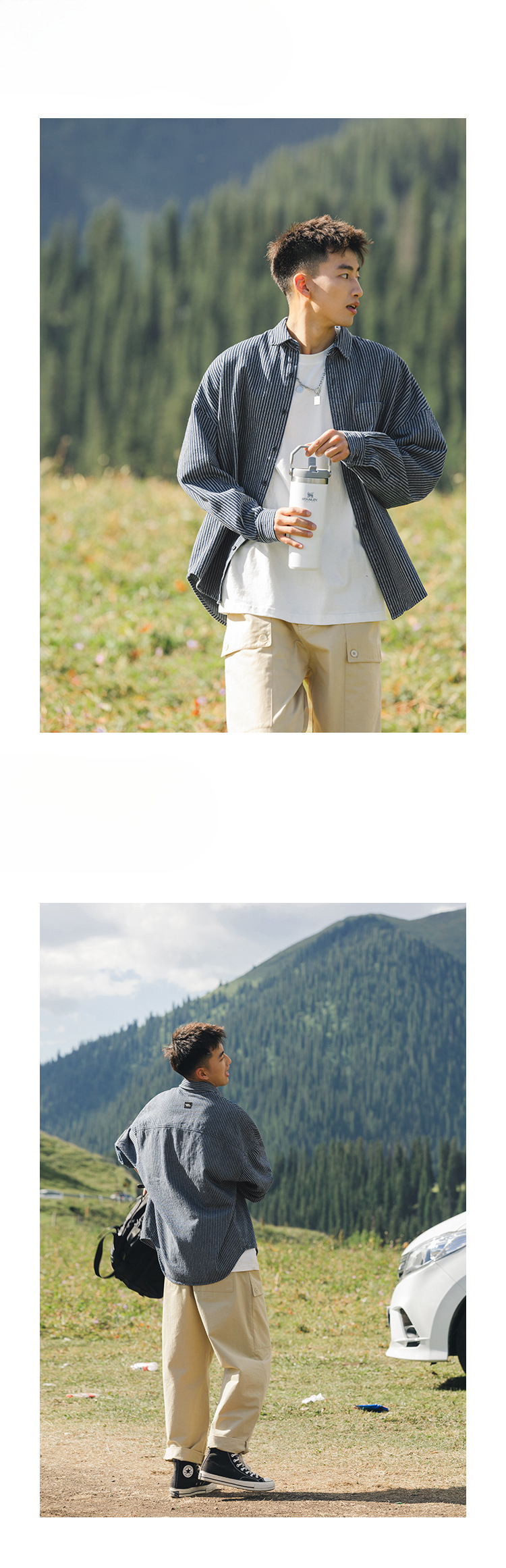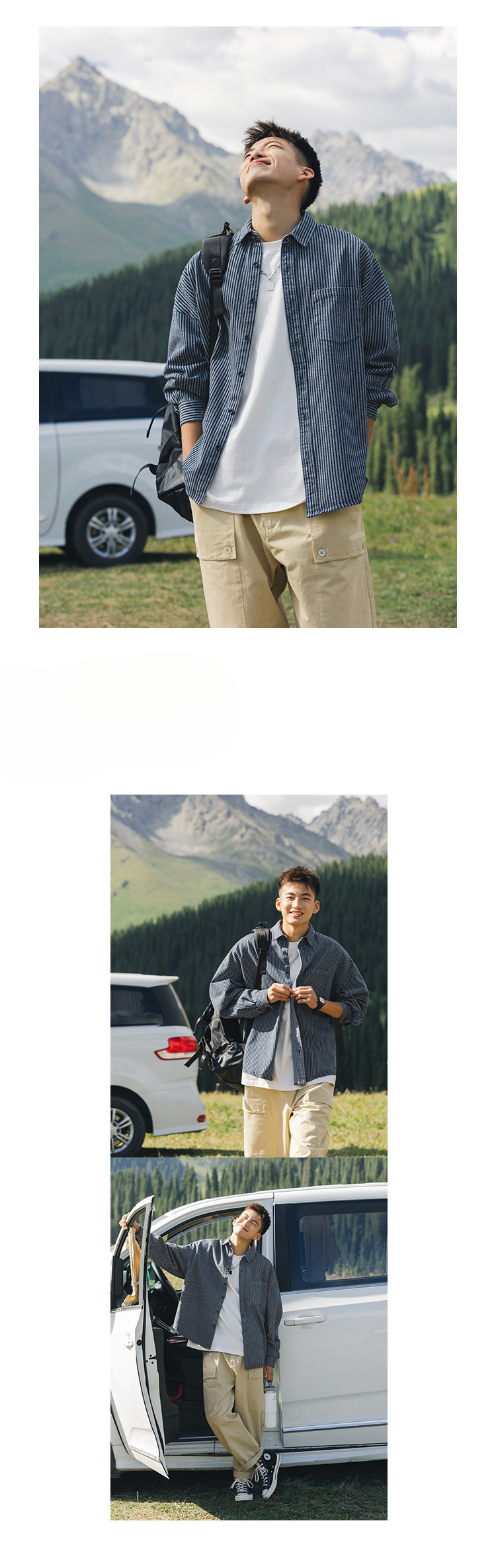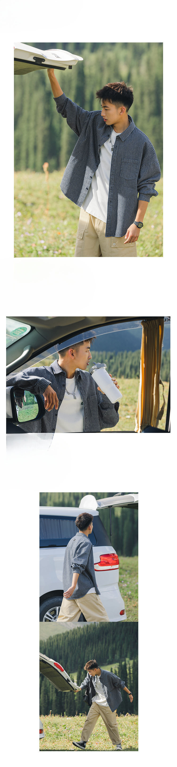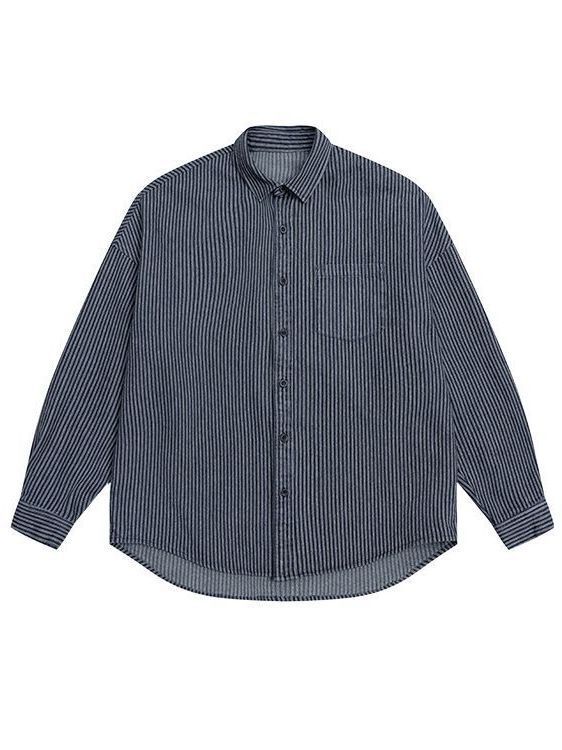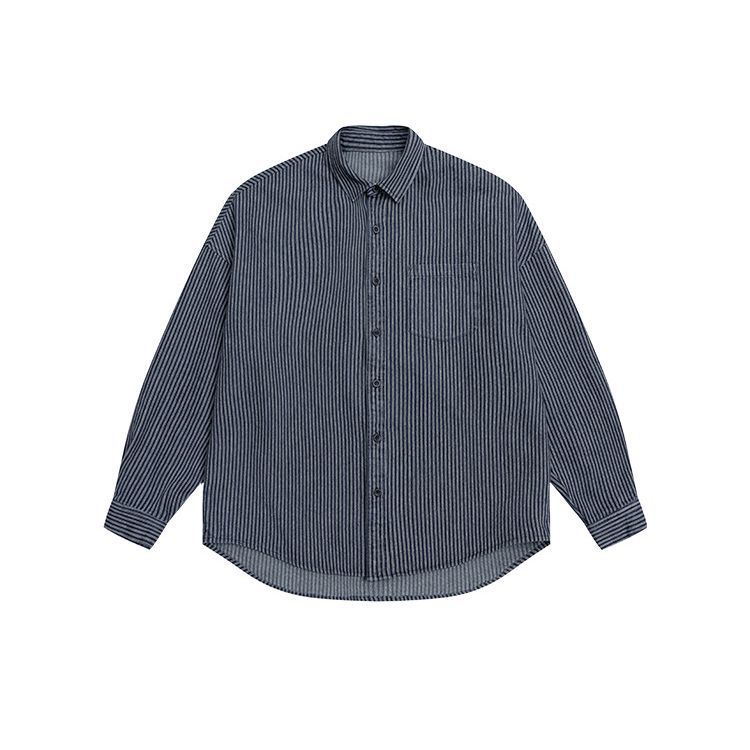 Lu Xiaohu 트렌디 브랜드 워싱 스트라이프 데님 긴팔 셔츠 남성 일본 캐주얼 cityboy 블루 셔츠 재킷스토어 가기