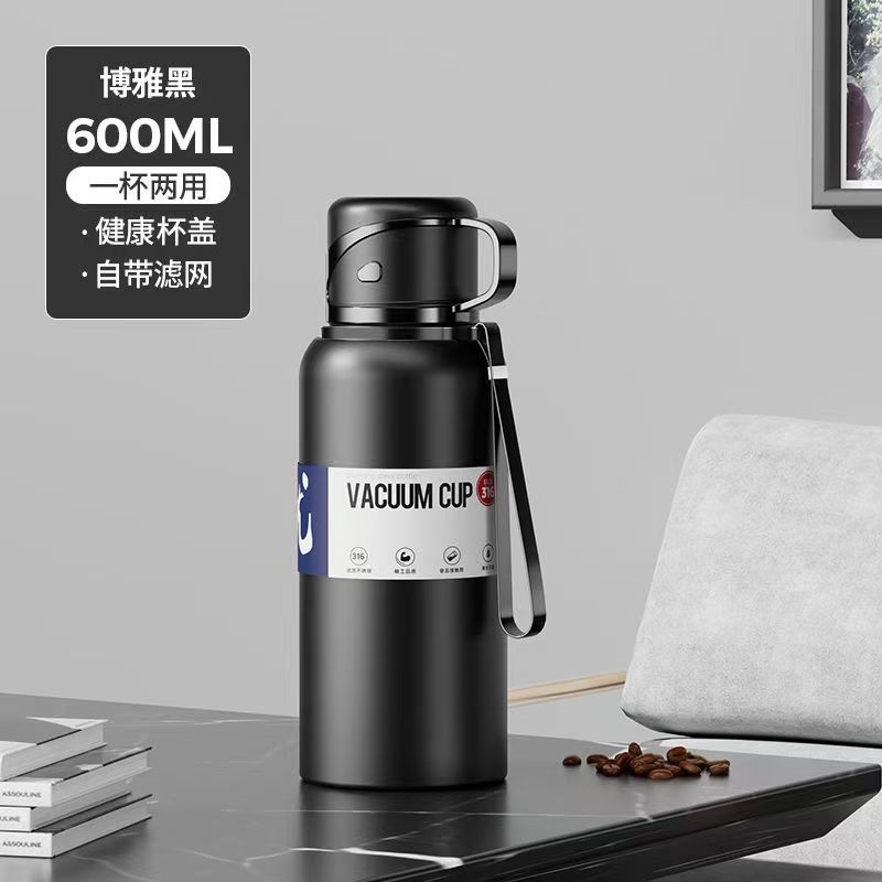 316 스테인레스 스틸 대용량 보온병 컵 모든 강철 차 컵 모든 강철 야외 스포츠 냄비 고급 선물 물 컵