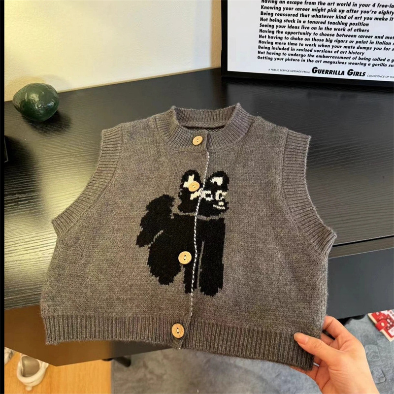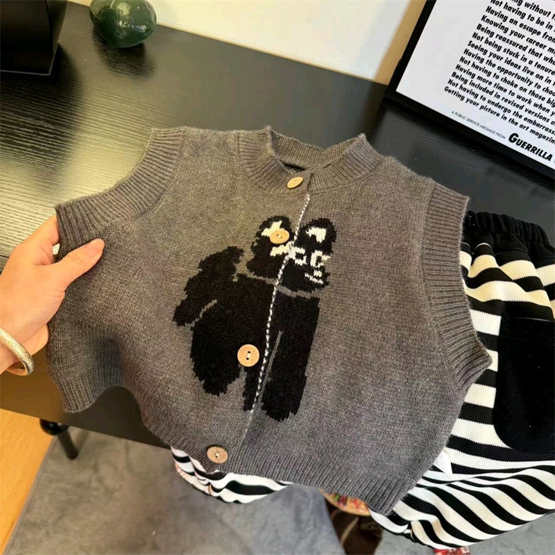 작은 천 곰 소년 2025 봄과 가을 조끼 조끼 어린이 한국 니트 스웨터 남자 보물 가을 재킷 아동복