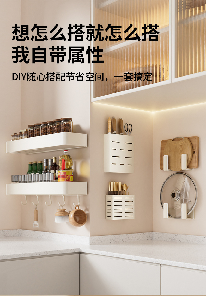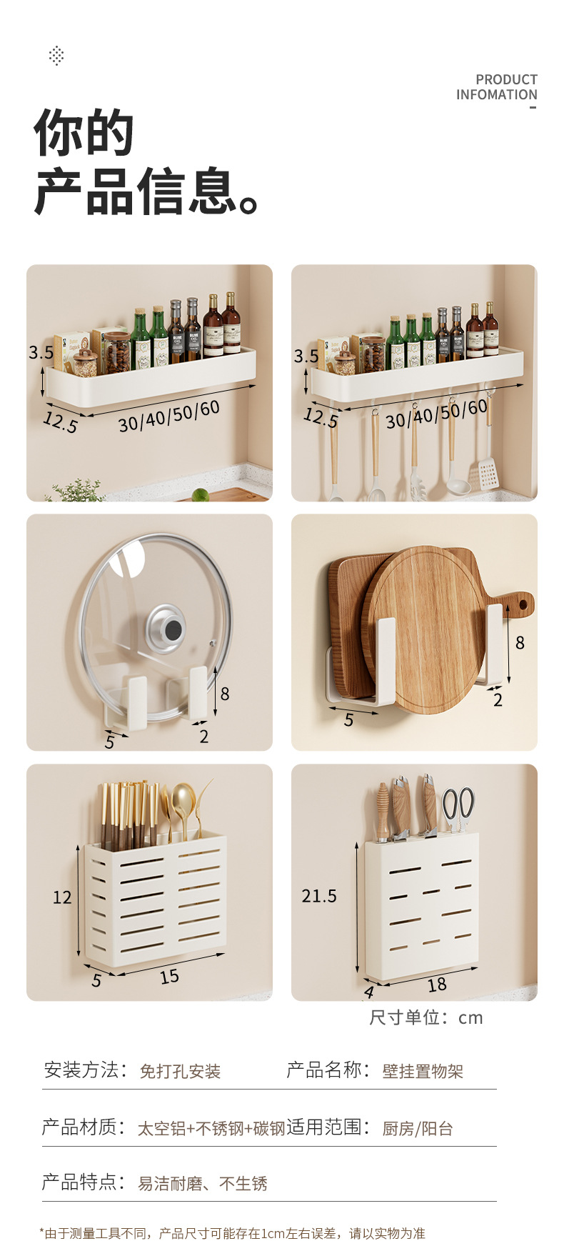 흰색 공간 알루미늄 주방 보관 랙 펀치없는 벽 장착 조미료 랙 주방 용품 백화점 보관 랙