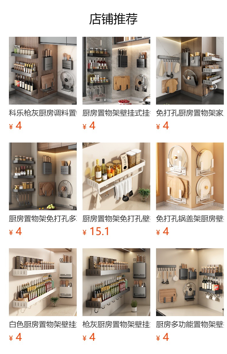흰색 공간 알루미늄 주방 보관 랙 펀치없는 벽 장착 조미료 랙 주방 용품 백화점 보관 랙스토어 가기