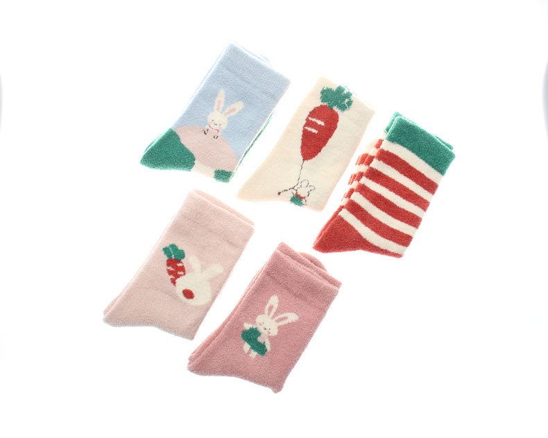 산호 양털 뼈없는 솔기 머리 @ 여섯 손가락 마우스 어린이 양말 가을과 겨울 따뜻한 소년과 소녀 두꺼운 플러스 스타킹 도매스토어 가기