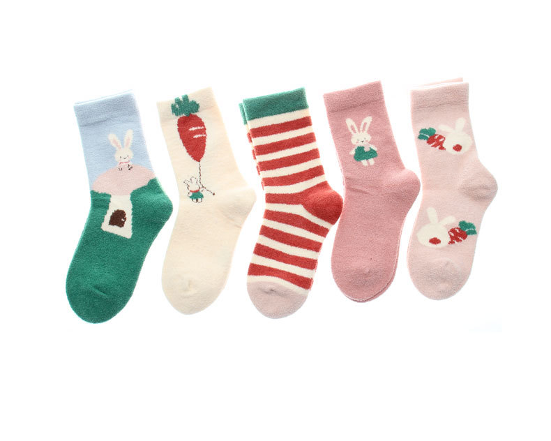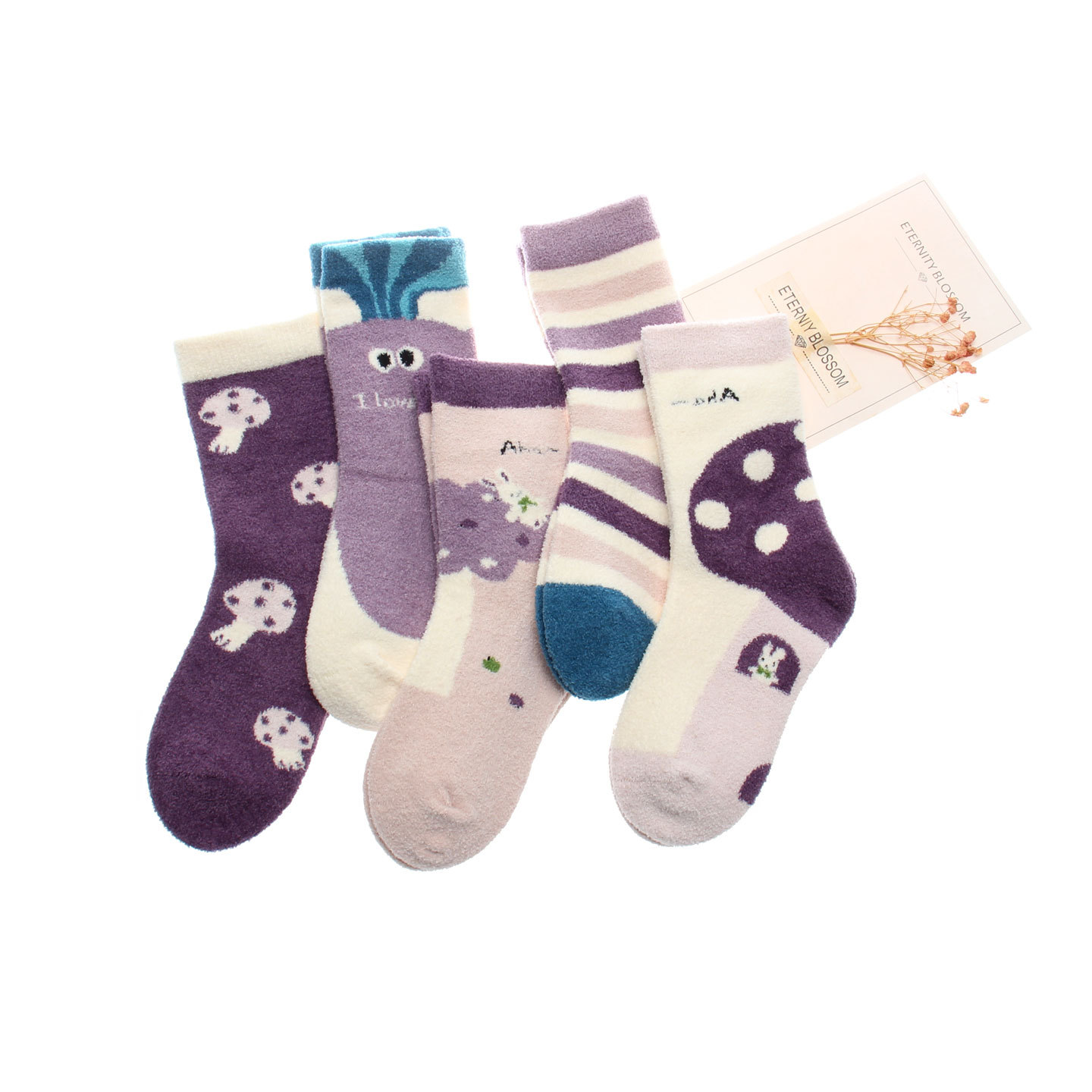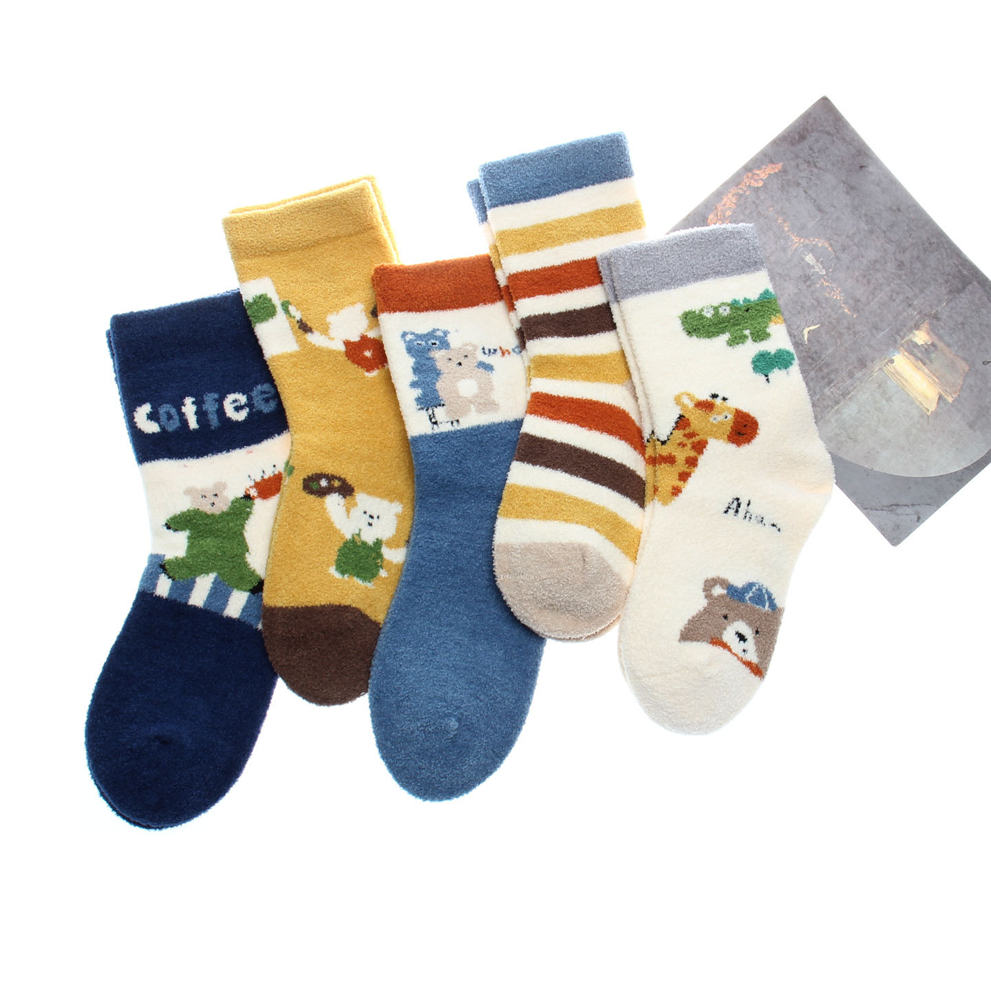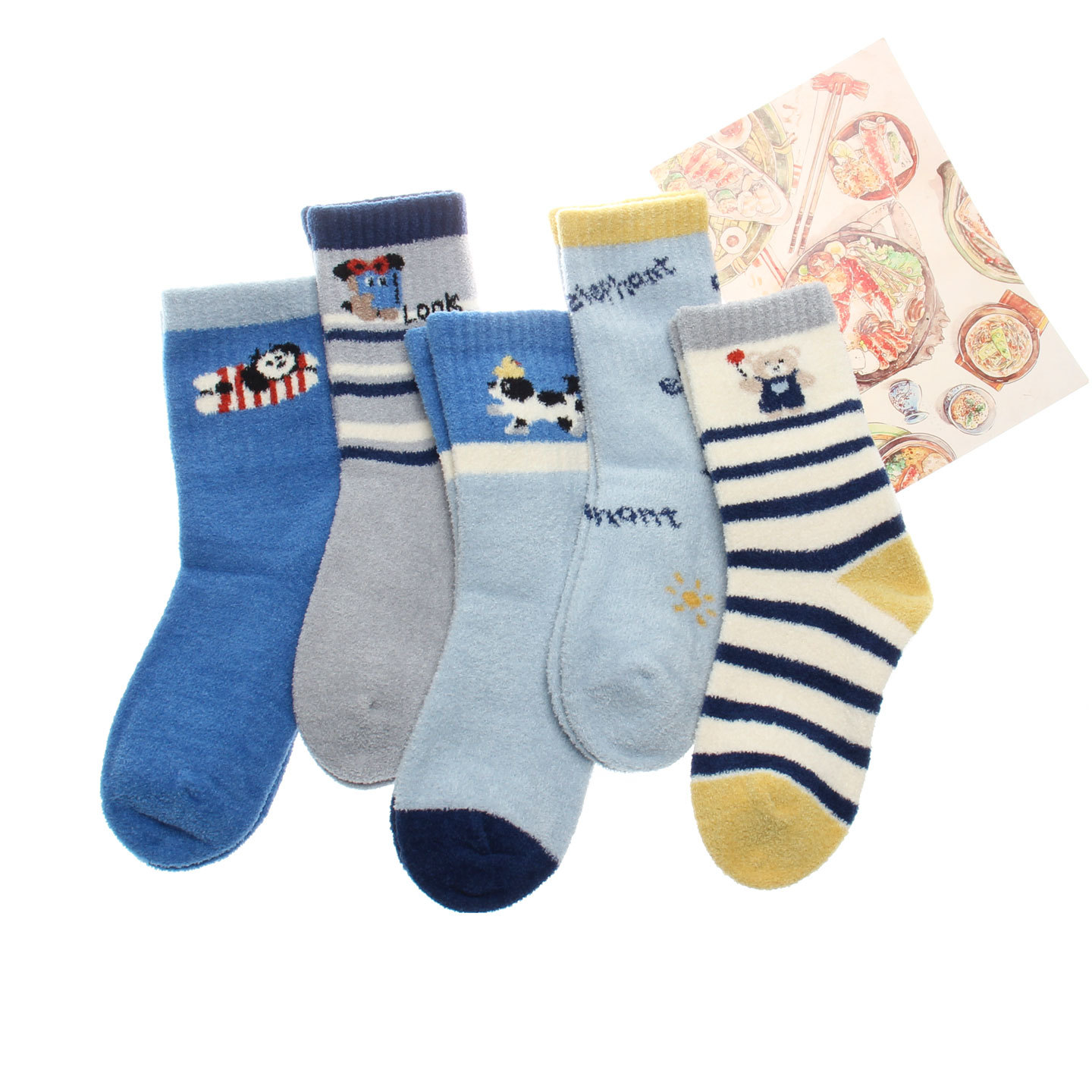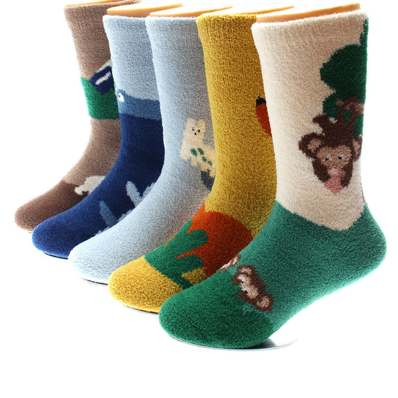 산호 양털 뼈없는 솔기 머리 @ 여섯 손가락 마우스 어린이 양말 가을과 겨울 따뜻한 소년과 소녀 두꺼운 플러스 스타킹 도매