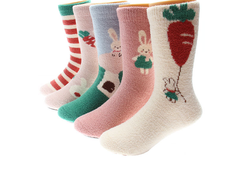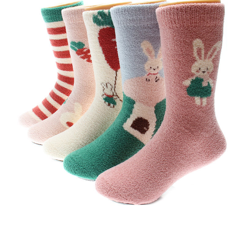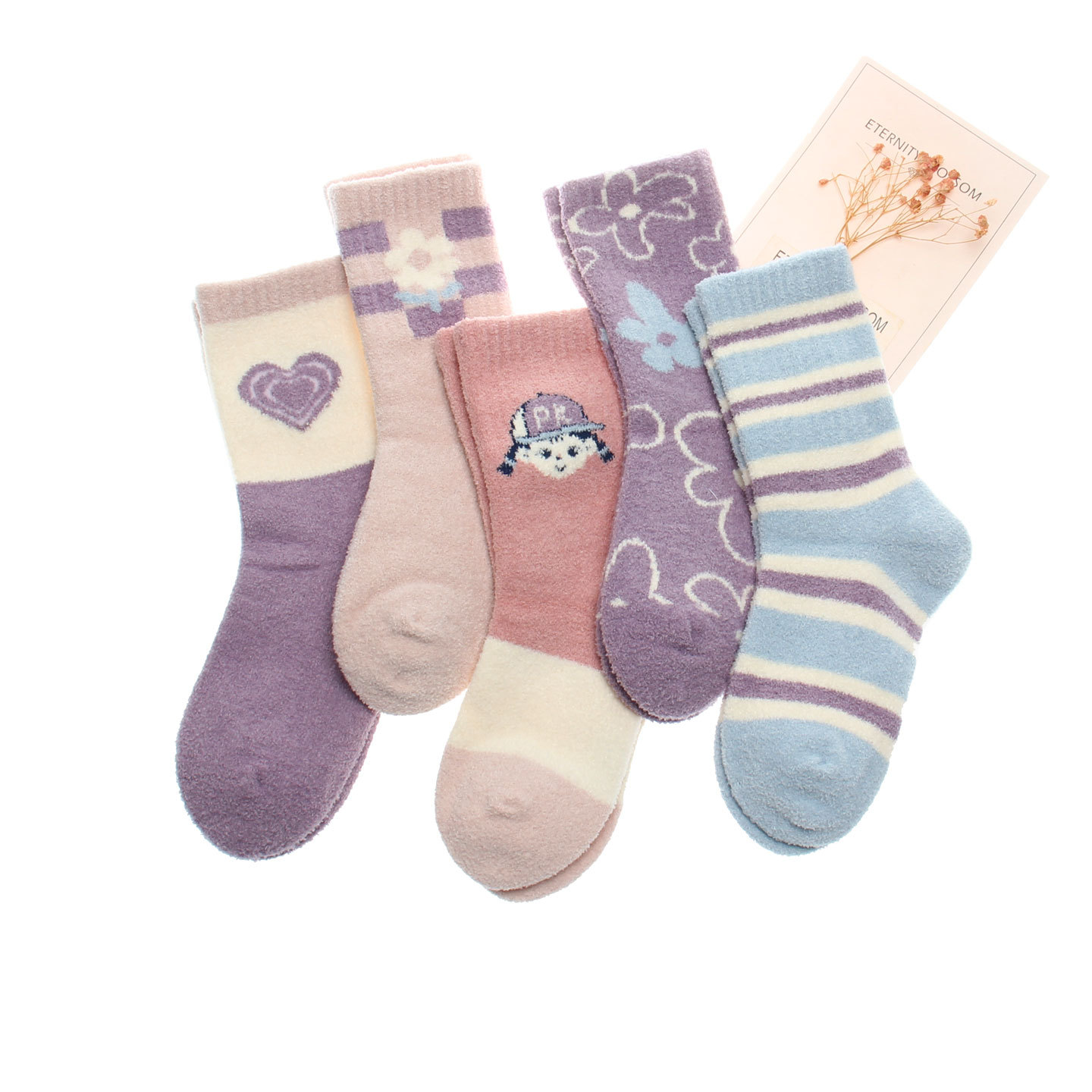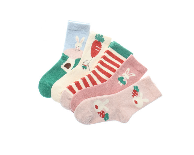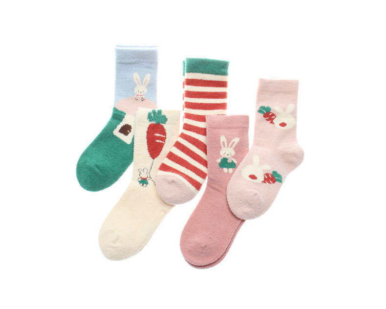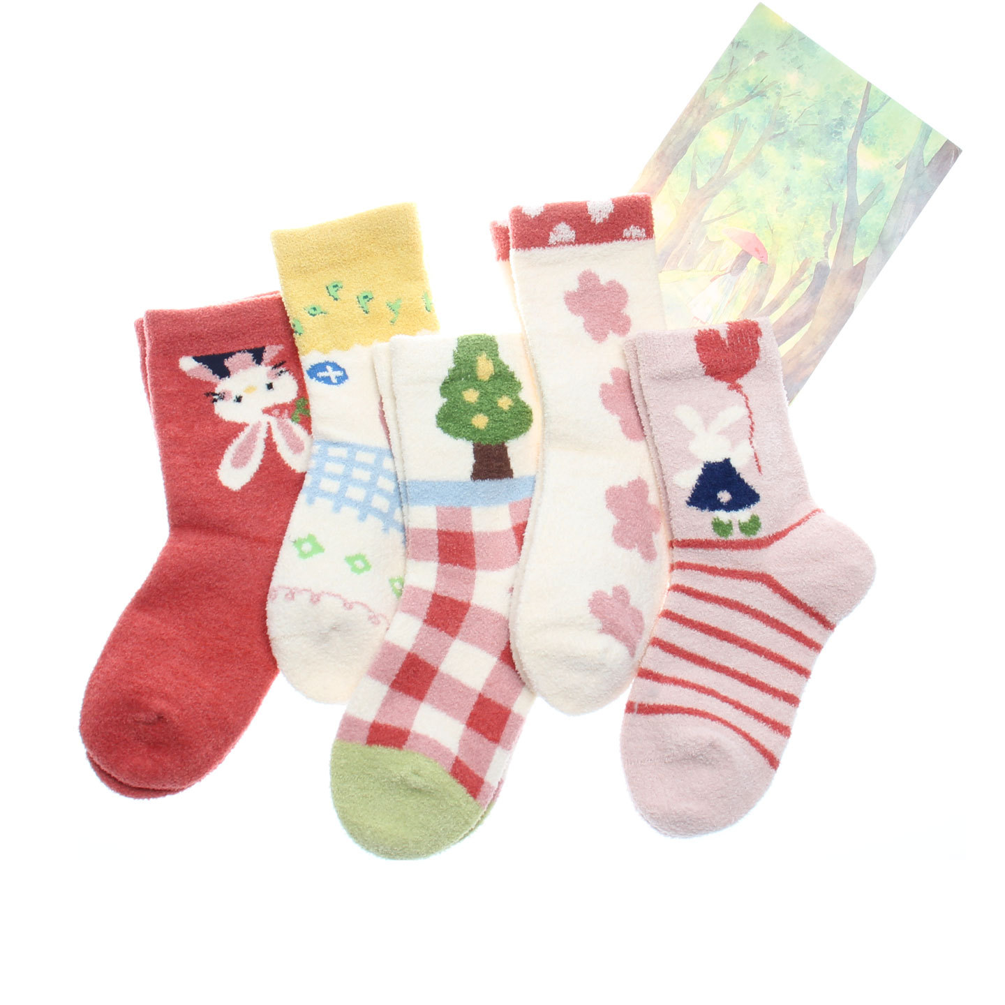 산호 양털 뼈없는 솔기 머리 @ 여섯 손가락 마우스 어린이 양말 가을과 겨울 따뜻한 소년과 소녀 두꺼운 플러스 스타킹 도매