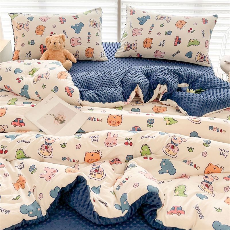 작은 신선한 콩 이불 두꺼운 따뜻한 이불 어린이 면화 가을 및 겨울 두 배 새로운 감기 저항하는 두꺼운 이불 코어스토어 가기