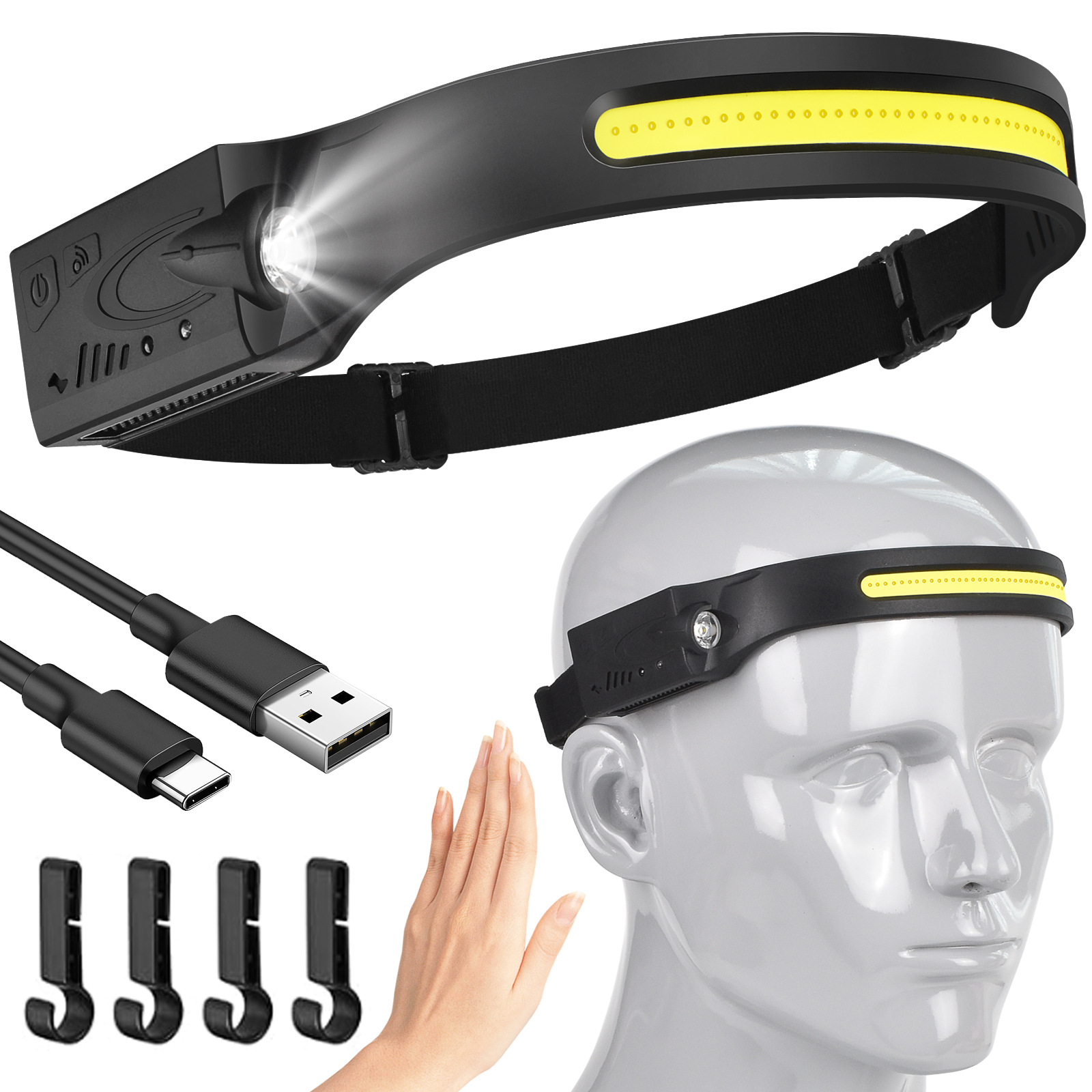 새로운 국경 흔들기 유도 COB 헤드 라이트 야외 자전거 조명 USB 충전 야간 주행 등 L ED 밝은 헤드 라이트스토어 가기
