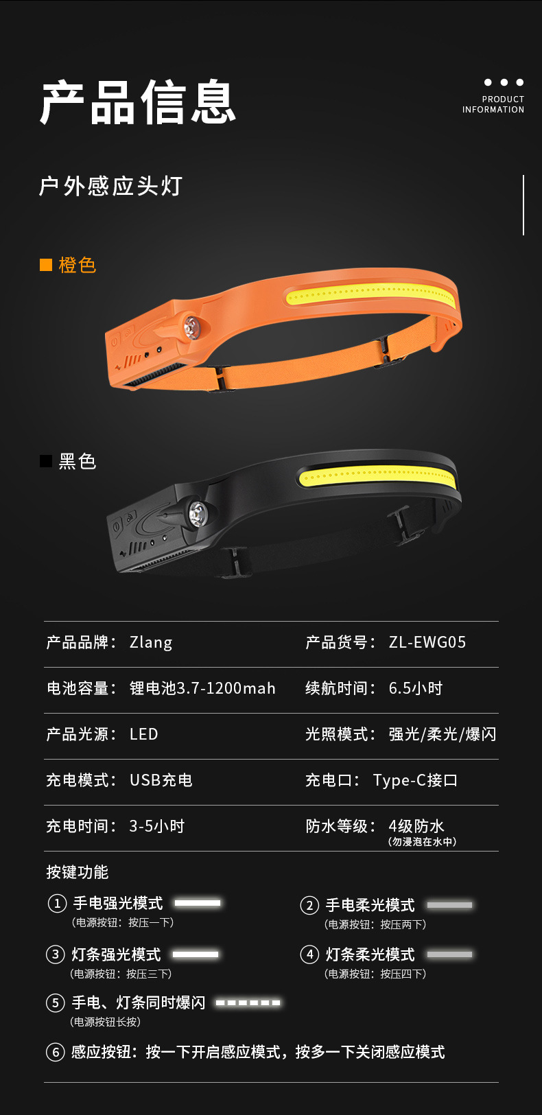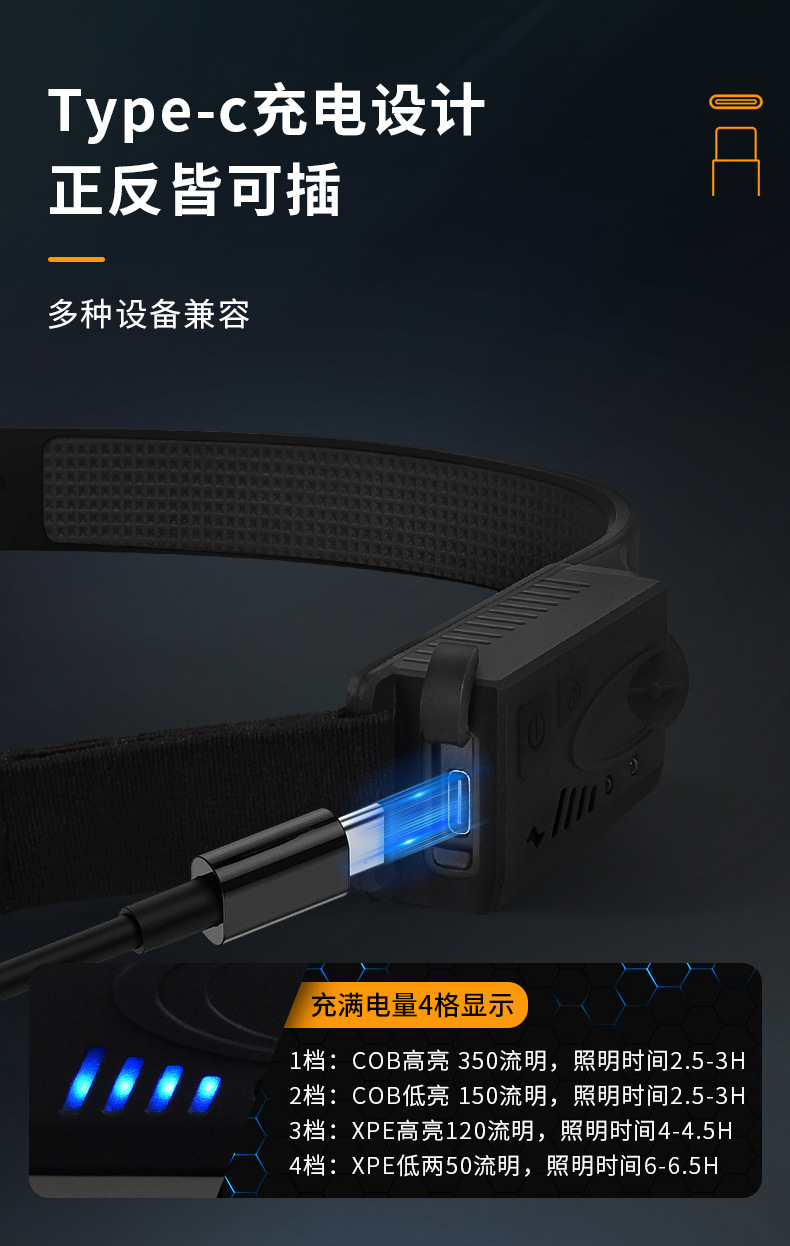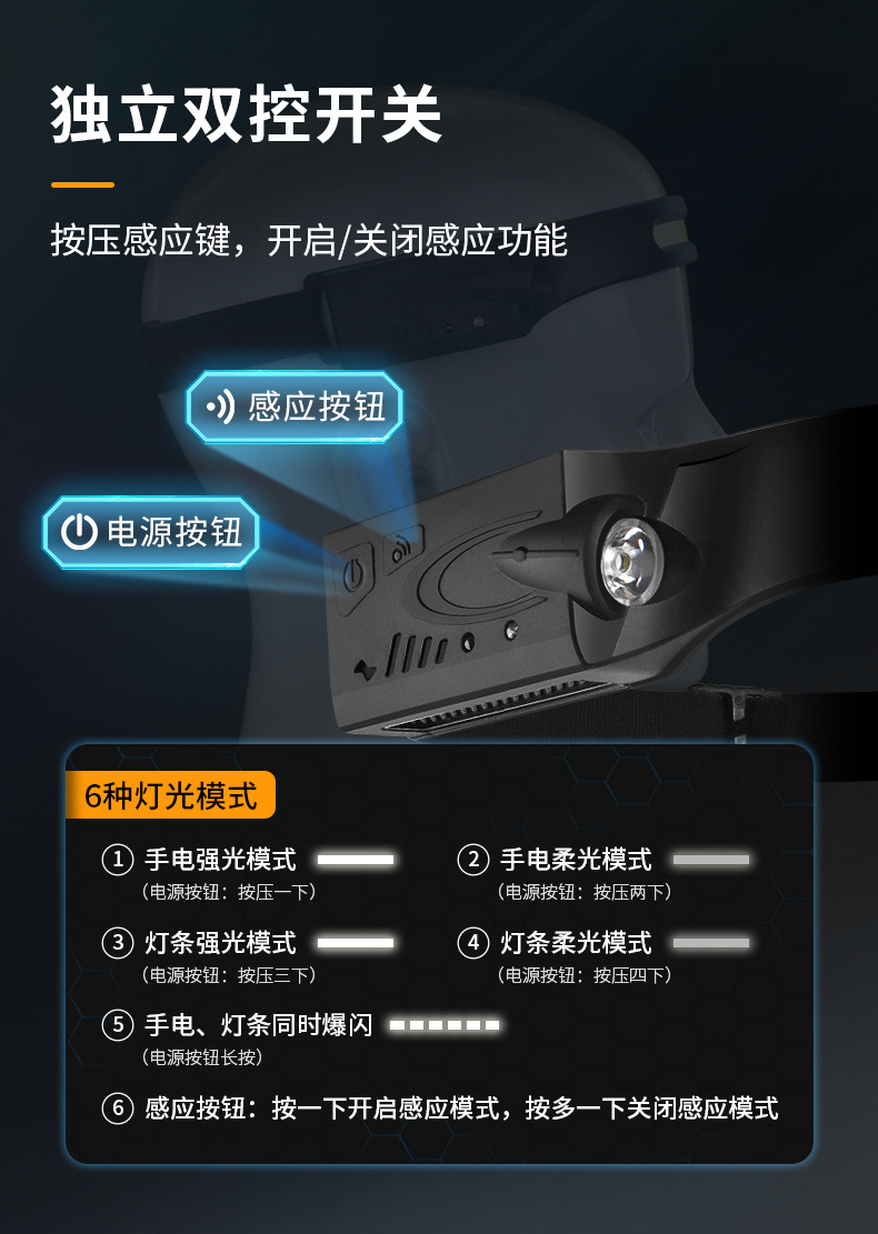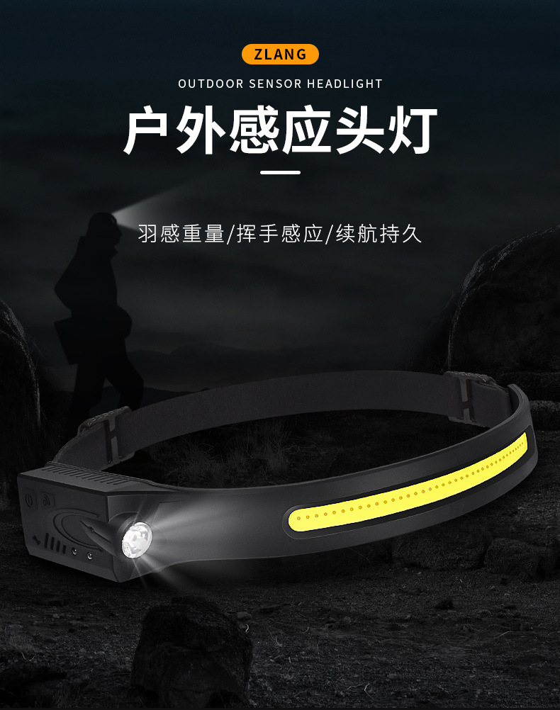 새로운 국경 흔들기 유도 COB 헤드 라이트 야외 자전거 조명 USB 충전 야간 주행 등 L ED 밝은 헤드 라이트